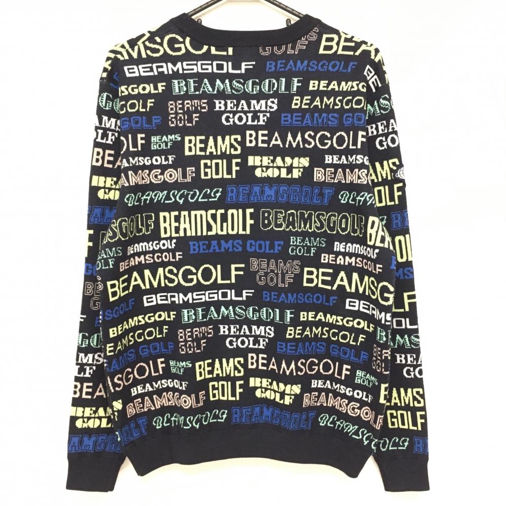 【超美品】ビームスゴルフ セーター ネイビー×マルチ ロゴ総柄 ニット メンズ M ゴルフウェア 2022年モデル BEAMS GOLF