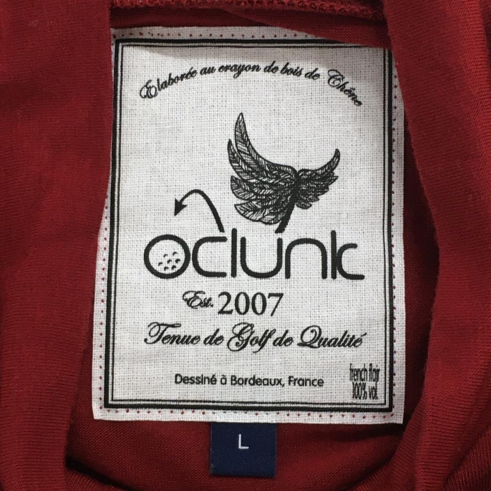 【美品】クランク 長袖ハイネックシャツ レッド ロゴパイル地 レディース L ゴルフウェア CLUNK