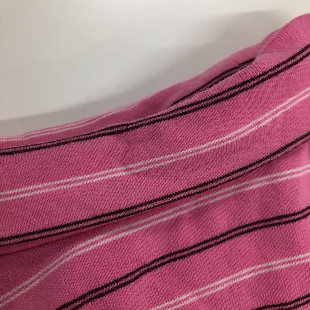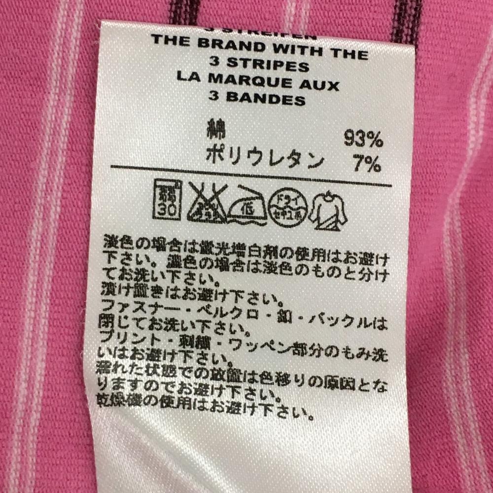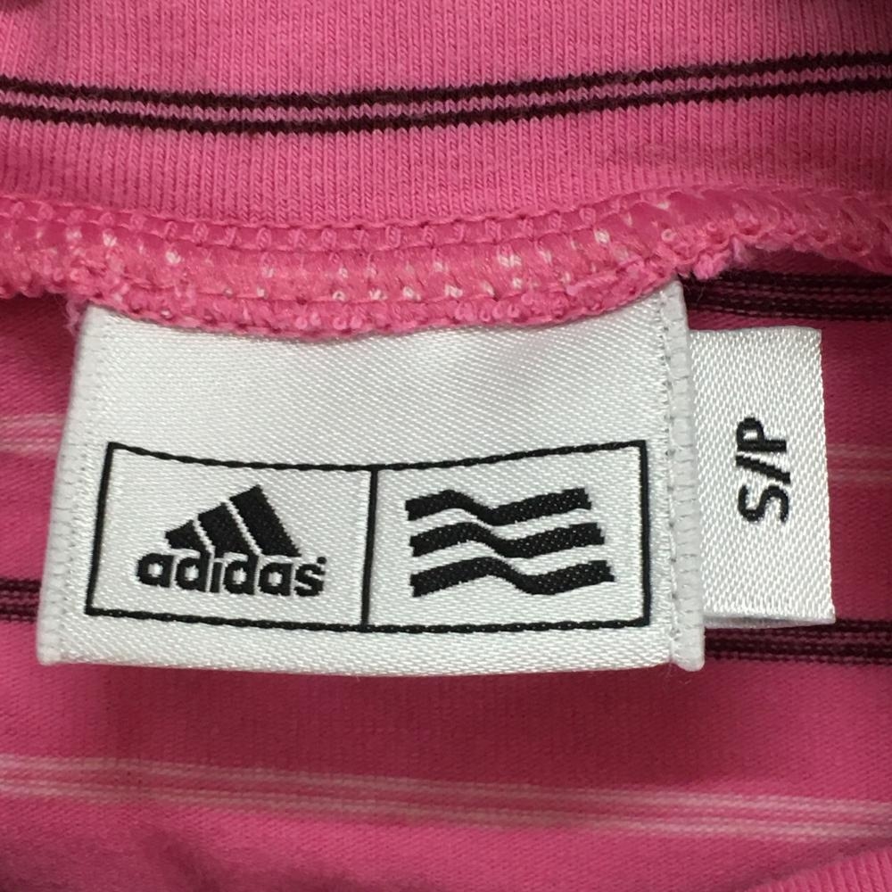 【美品】アディダス 長袖ハイネックシャツ ピンク×黒 ボーダー柄 ロゴ刺しゅう レディース S/P ゴルフウェア adidas