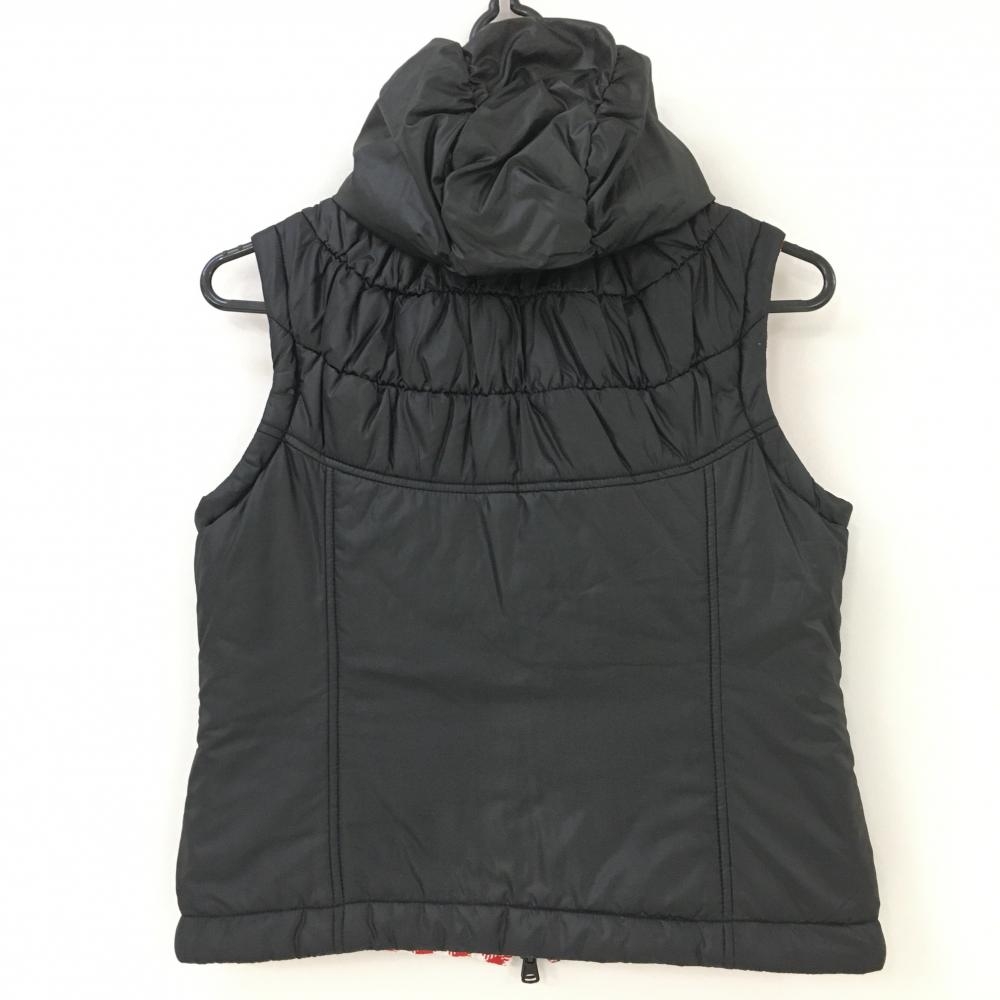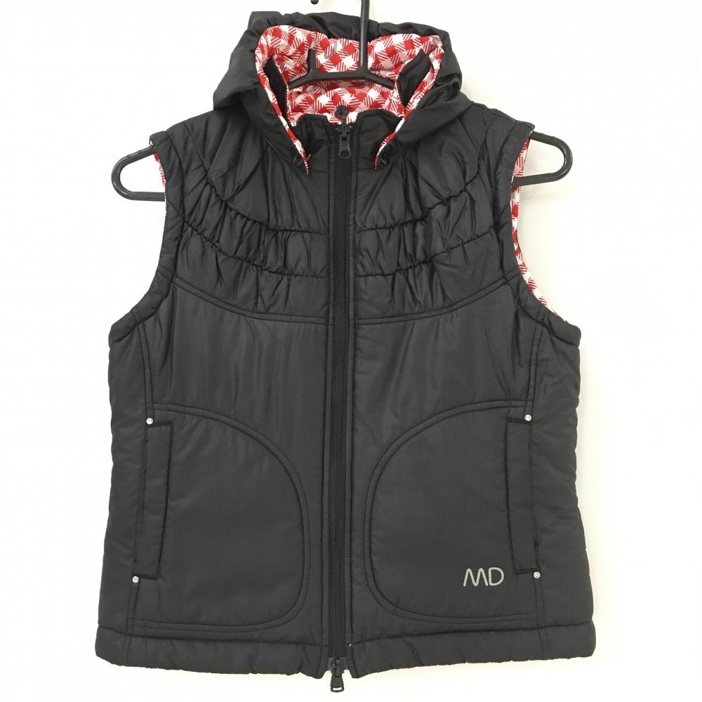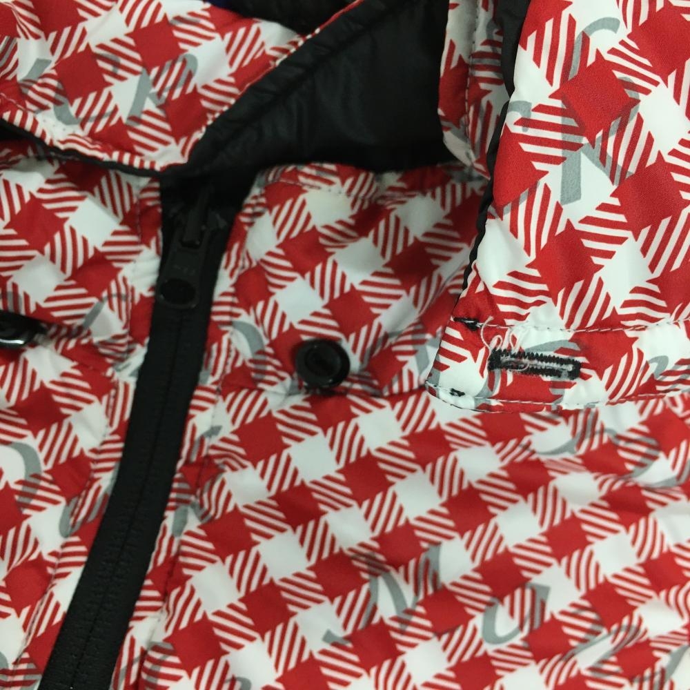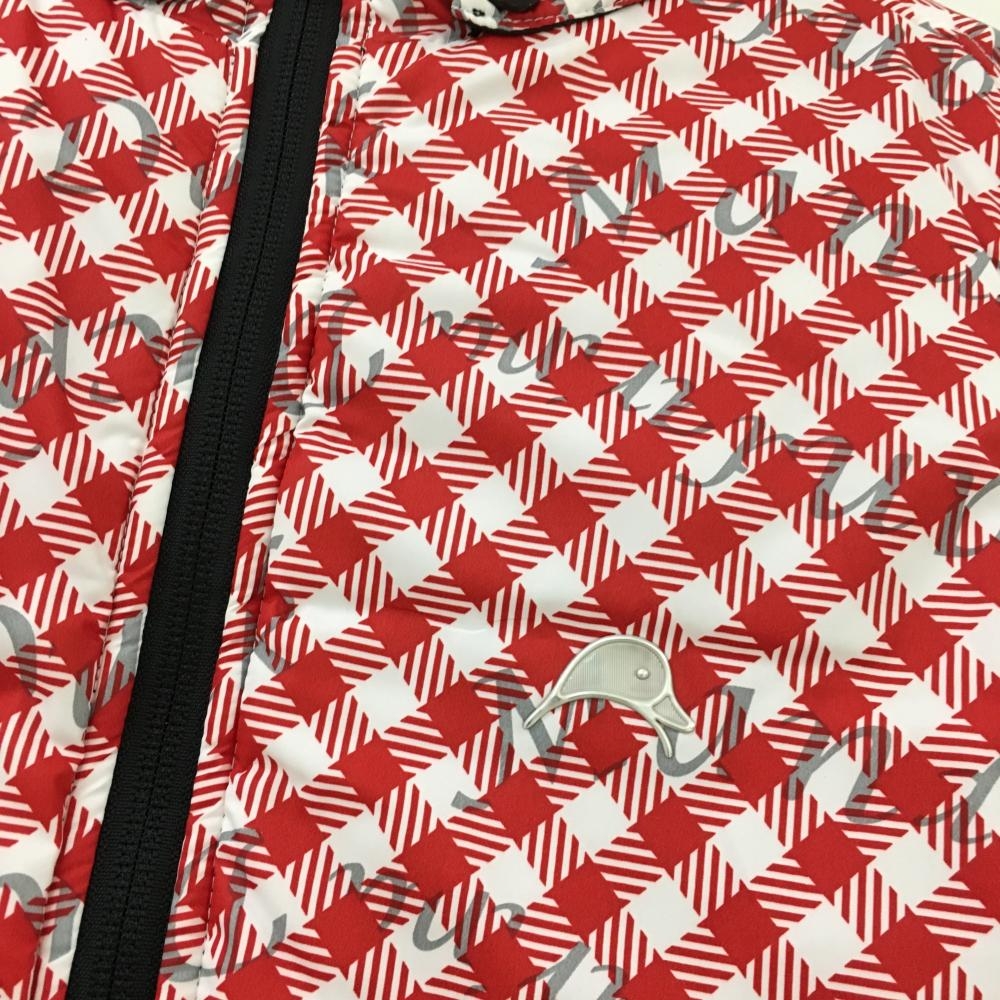 【美品】マンダリナダック 中綿リバーシブルベスト レッド×白 チェック 4WAY フード着脱可 レディース S ゴルフウェア MANDARINADUCK