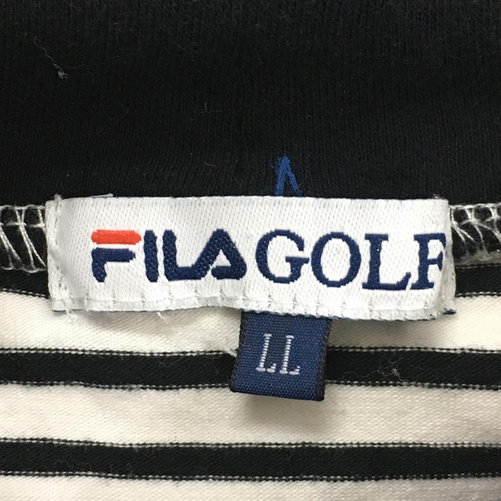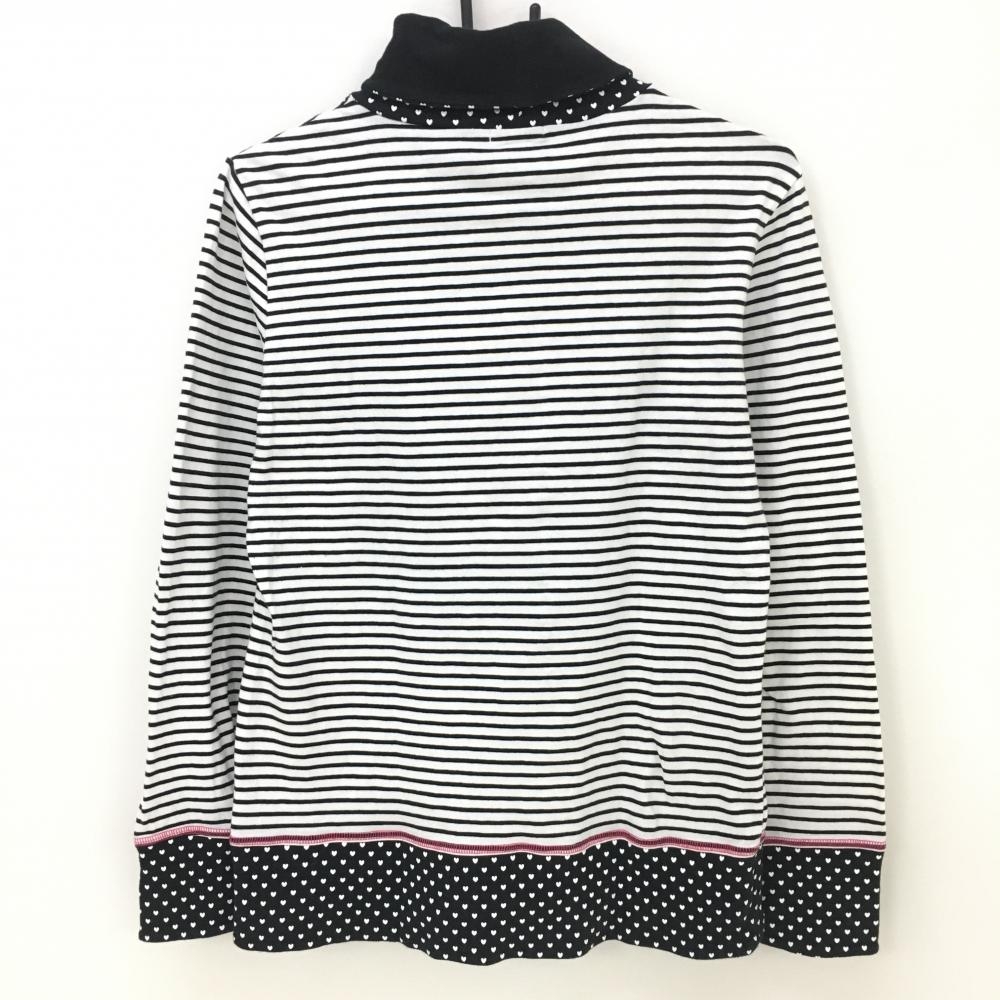 フィラゴルフ 長袖ハイネックシャツ 白×黒 ボーダー ラメ入りロゴ ハート レディース LL ゴルフウェア FILA GOLF