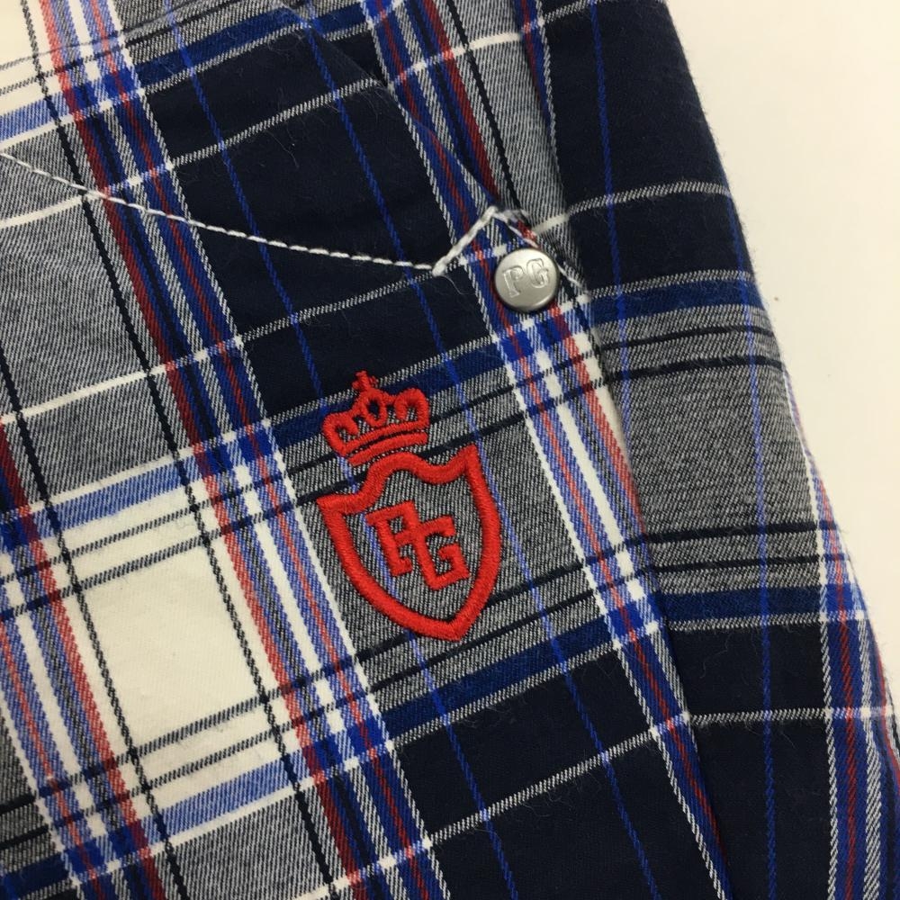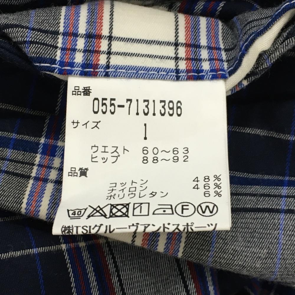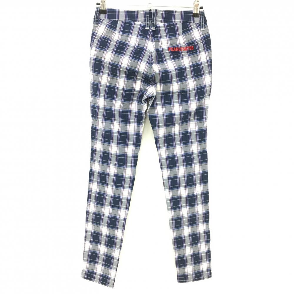【超美品】パーリーゲイツ パンツ ネイビー×白 チェック ストレッチ レディース 1(M) ゴルフウェア PEARLY GATES