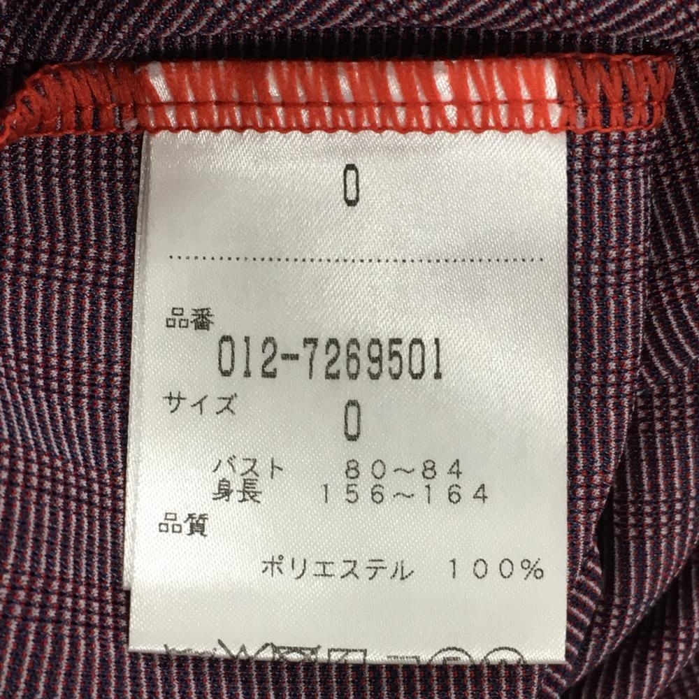 【超美品】ニューバランスゴルフ 長袖シャツ レッド×ネイビー ストライプ ボタンダウン レディース 0(S) ゴルフウェア New Balance