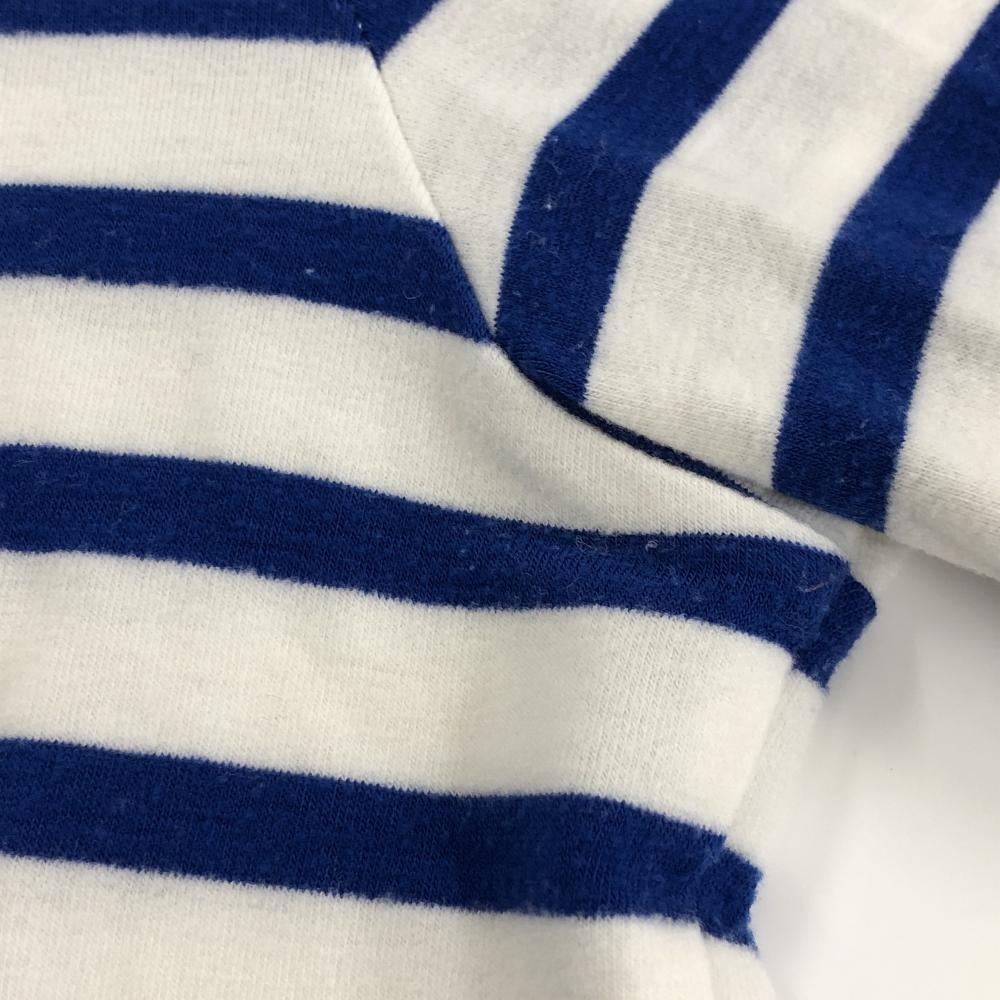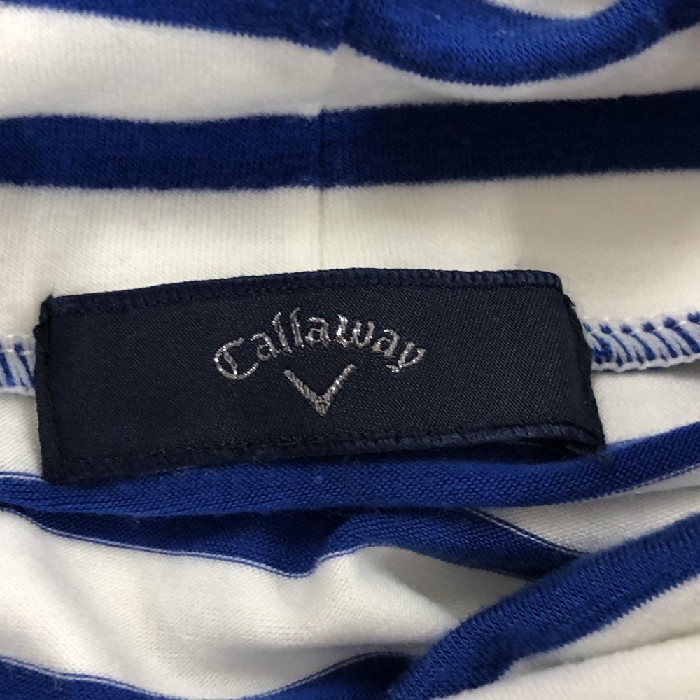 【美品】キャロウェイ 長袖ハイネックシャツ 白×ブルー ボーダー 表微起毛 アクリル混 レディース S ゴルフウェア Callaway
