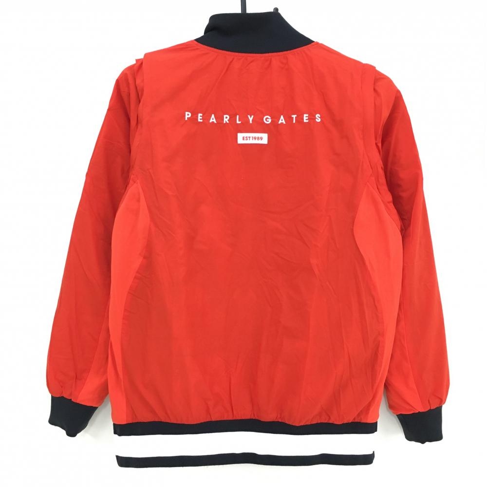 【美品】パーリーゲイツ 中綿リバーシブルジャケット ネイビー×白 片面レッド 4WAY 袖着脱可 レディース 0(S) ゴルフウェア PEARLY GATES