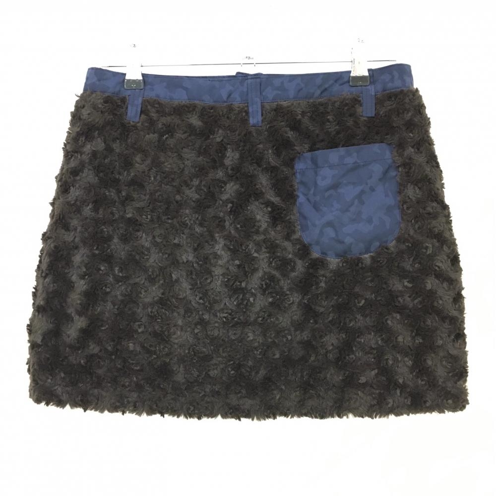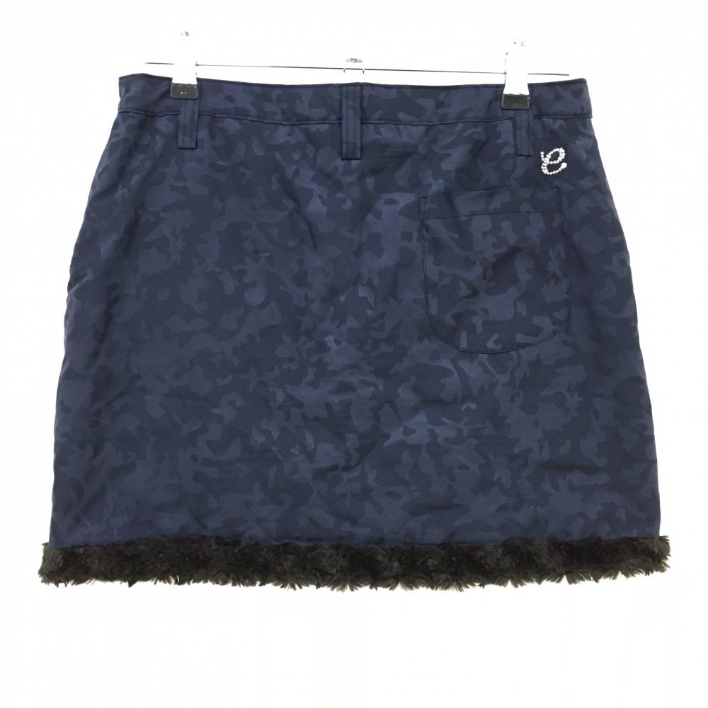 【美品】エフィカス リバーシブルスカート ネイビー×ブラウン 迷彩調 カモフラ ボア レディース 2(M) ゴルフウェア efficace