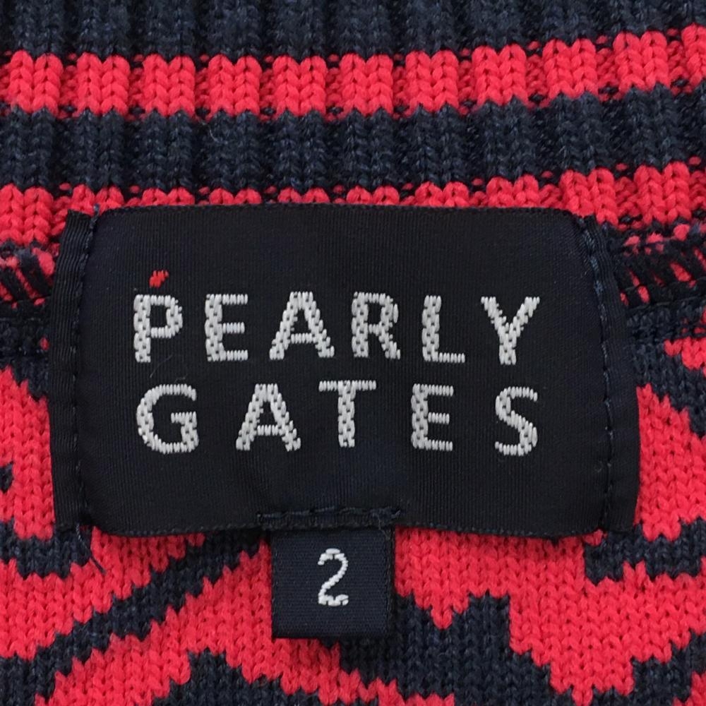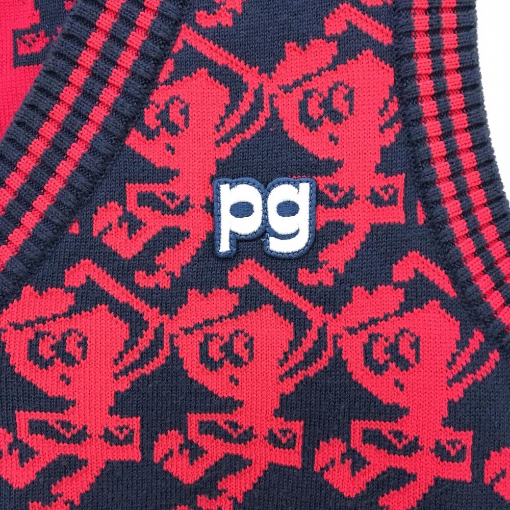 パーリーゲイツ×スポンジボブ ニットベスト ネイビー×レッド 総柄 コットン混 レディース 2(L) ゴルフウェア PEARLY GATES