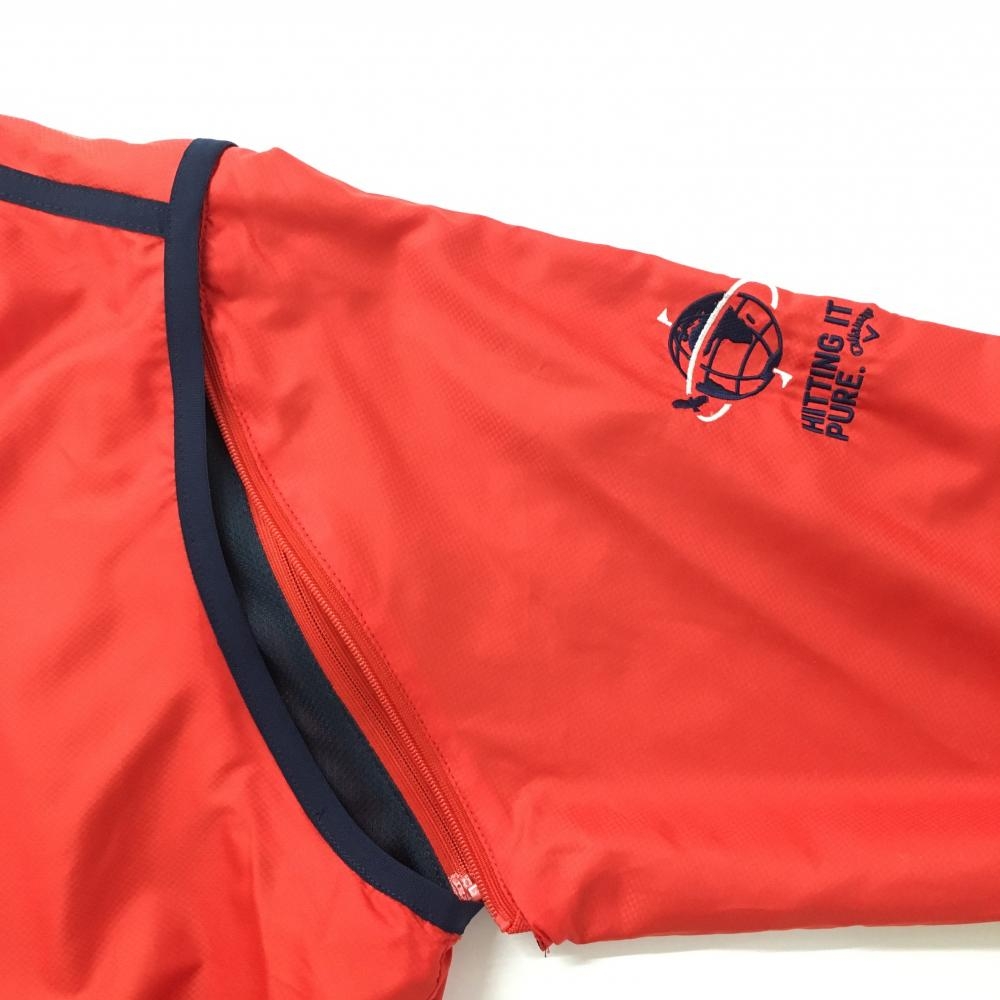 【超美品】キャロウェイ 2WAYジャケットブルゾン レッド×ネイビー 地模様 袖着脱可 レディース L ゴルフウェア Callaway