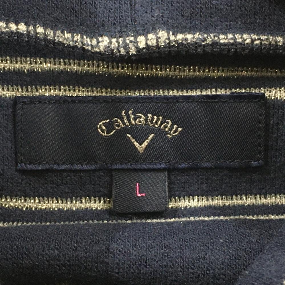 キャロウェイ 長袖タートルネックシャツ ネイビー×シルバー ボーダー 表微起毛 レディース L ゴルフウェア Callaway