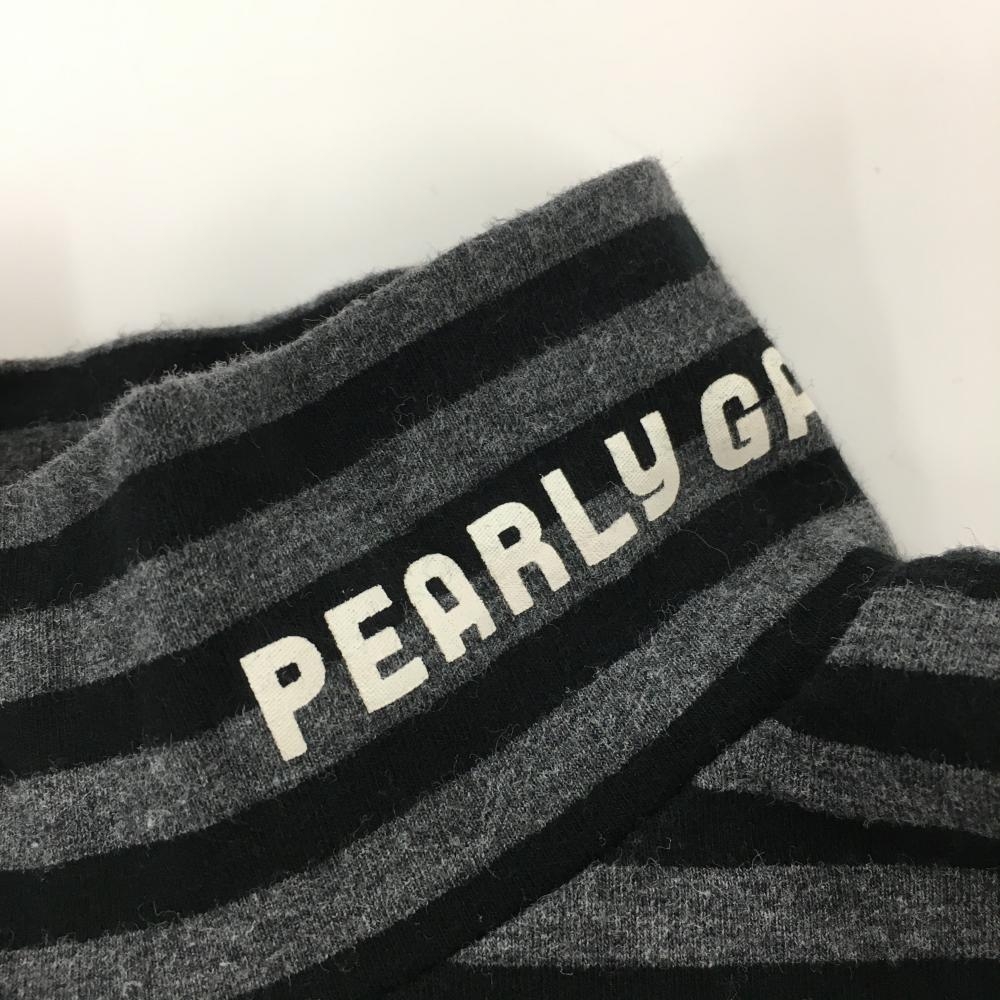 【美品】パーリーゲイツ 長袖ハイネックシャツ グレー×黒 ボーダー ロゴプリント レディース 0(S) ゴルフウェア PEARLY GATES