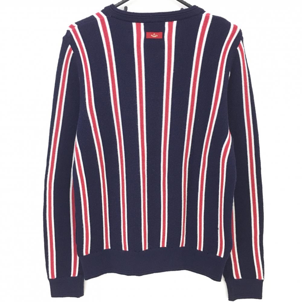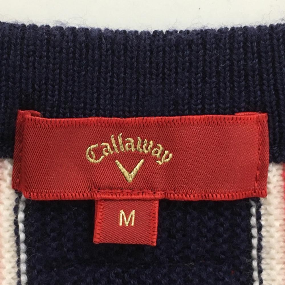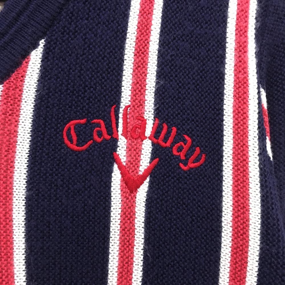 【美品】キャロウェイ レッドレーベル セーター ネイビー×レッド ストライプ ウール混 ニット メンズ M ゴルフウェア Callaway