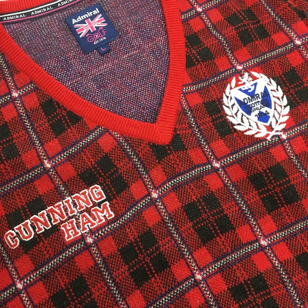 【超美品】アドミラル セーター レッド×黒 チェック Vネック レディース L ゴルフウェア Admiral