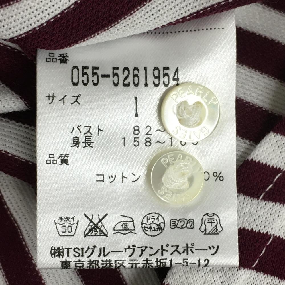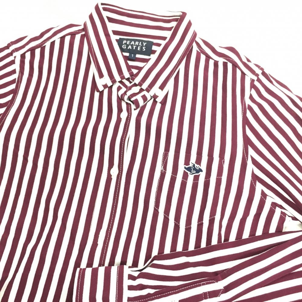 【超美品】パーリーゲイツ 長袖シャツ ボルドー×白 ストライプ ボタンダウン レディース 1(M) ゴルフウェア PEARLY GATES
