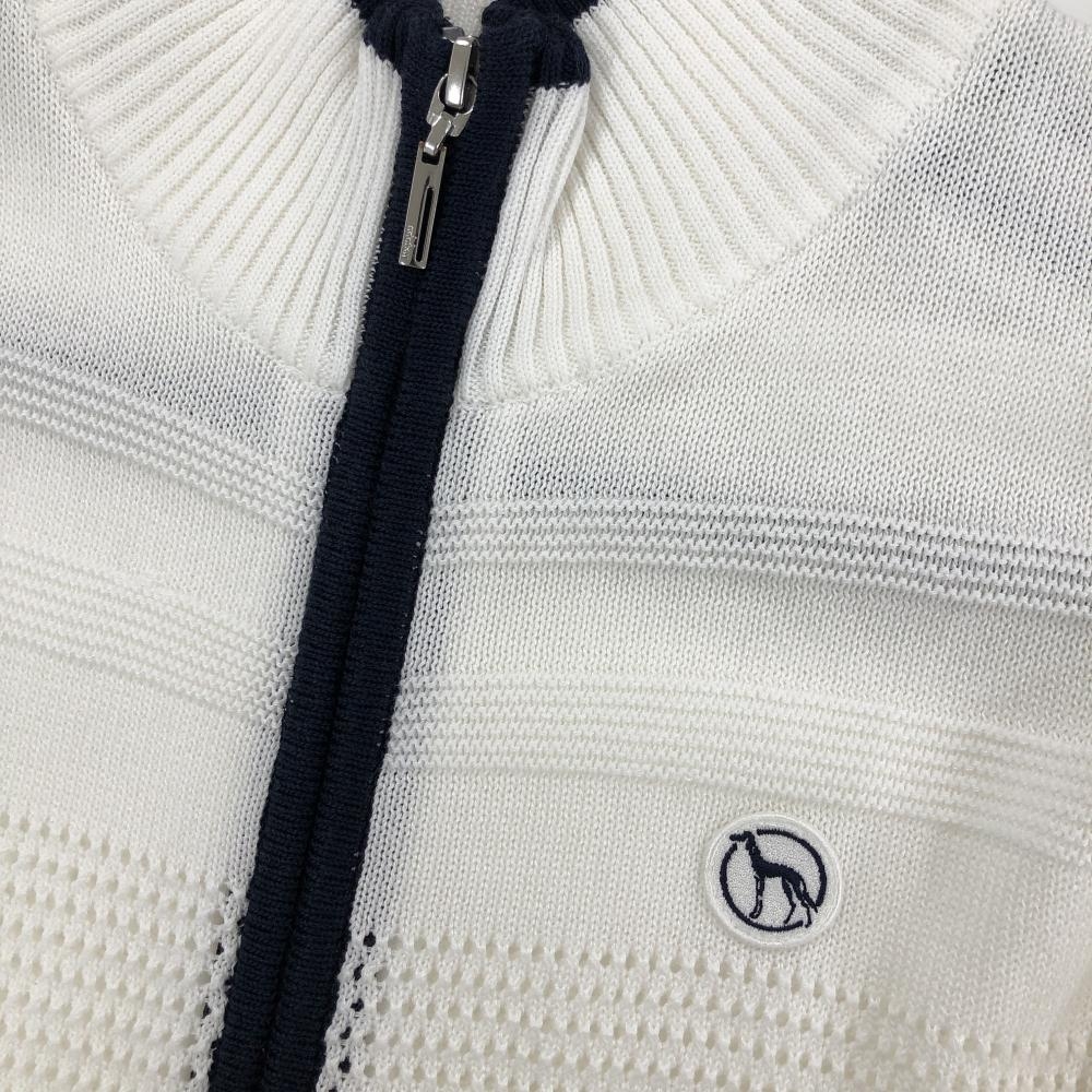 アダバット ニットブルゾン 白×ネイビー 透かし編み レディース 38(M) ゴルフウェア adabat