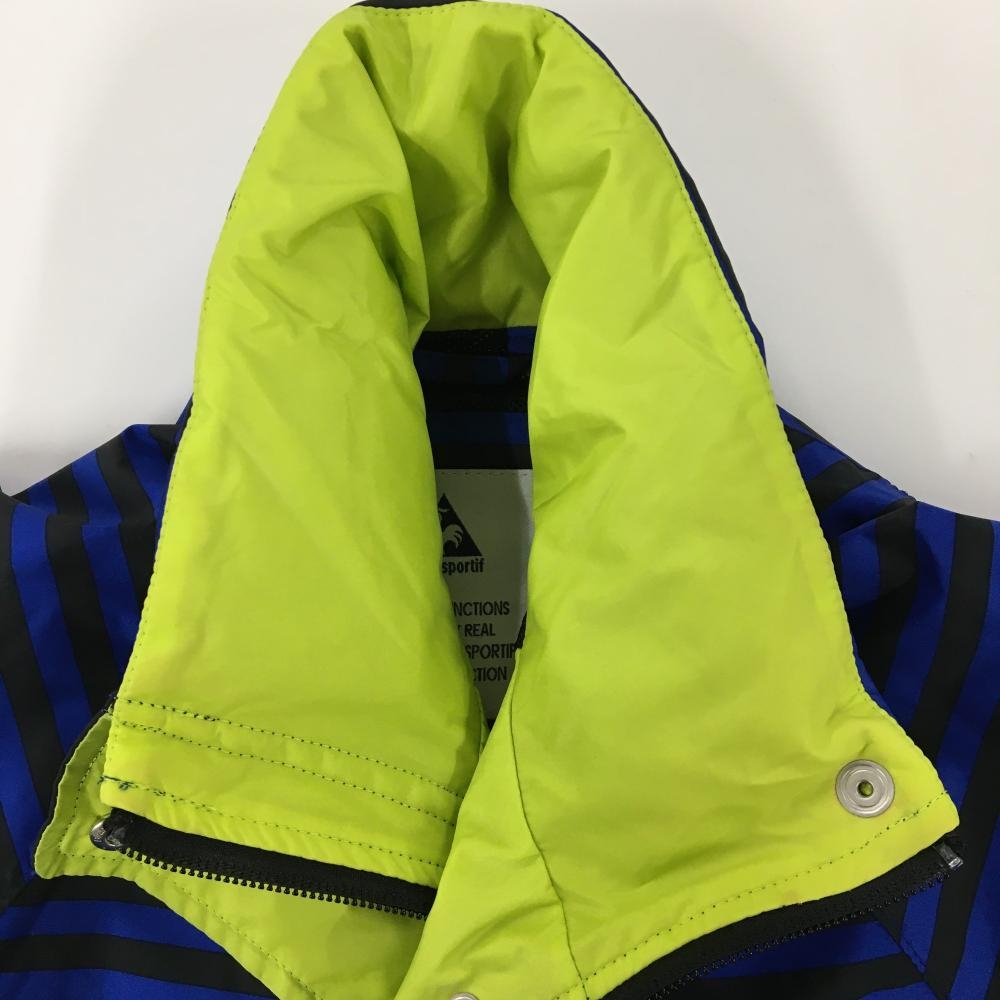 ルコック 2WAYロングジャケット ブルー×黒 ボーダー 袖着脱可 フード収納 メッシュ裏地 レディース M ゴルフウェア le coq sportif
