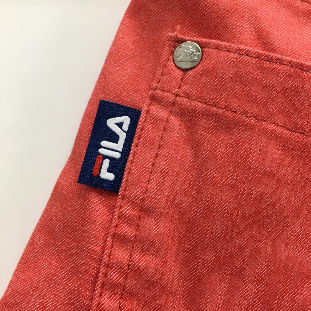 【超美品】フィラゴルフ キュロットスカート サーモンピンク×白 ワッペン レディース ゴルフウェア FILA GOLF