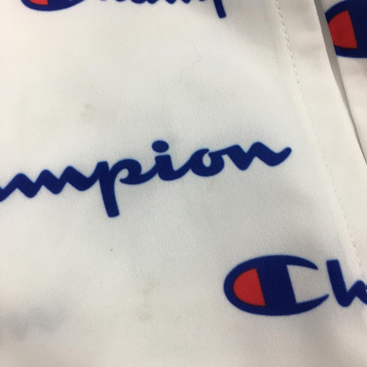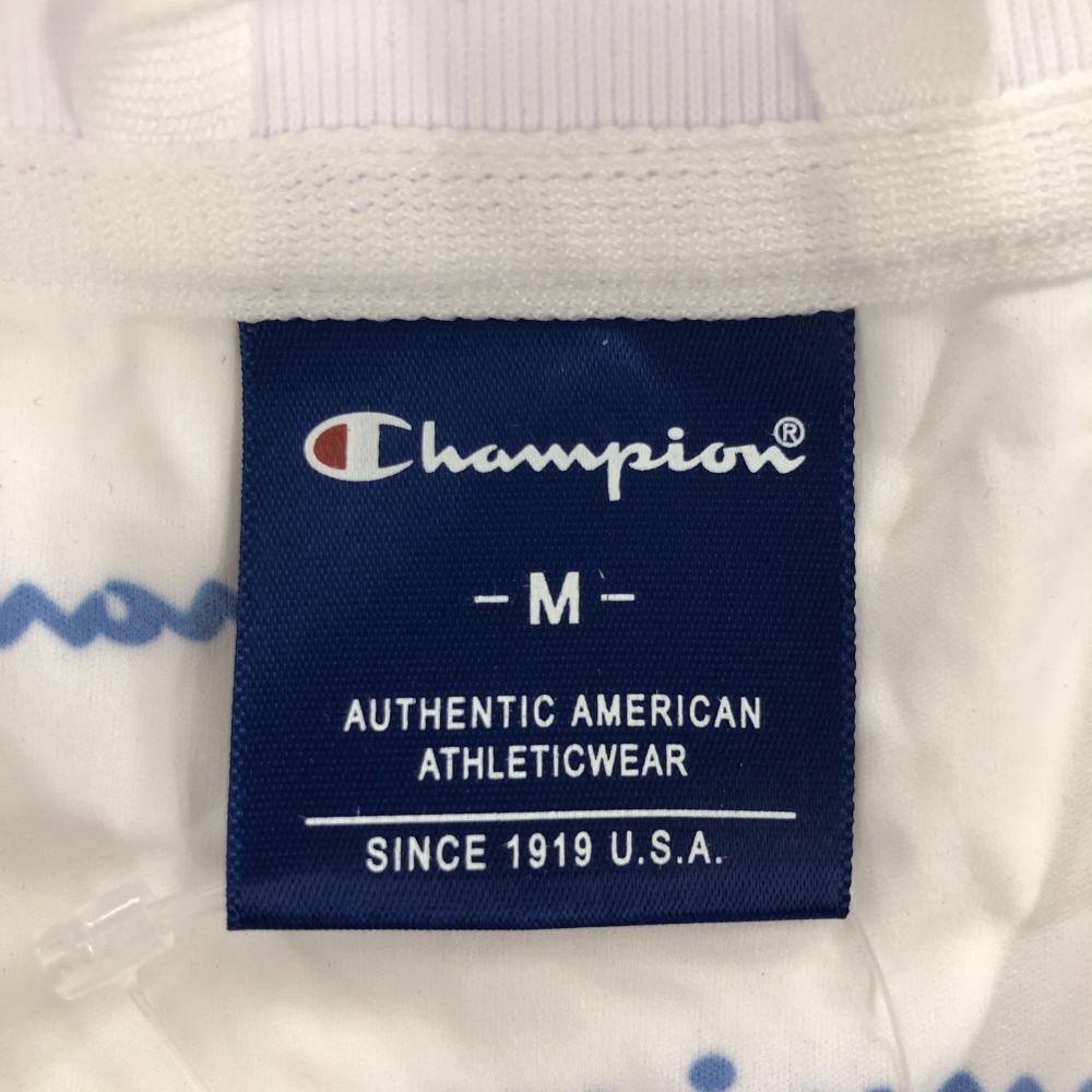【美品】チャンピオン ジャケットブルゾン 白×ブルー ロゴ総柄 薄手 レディース M ゴルフウェア Champion