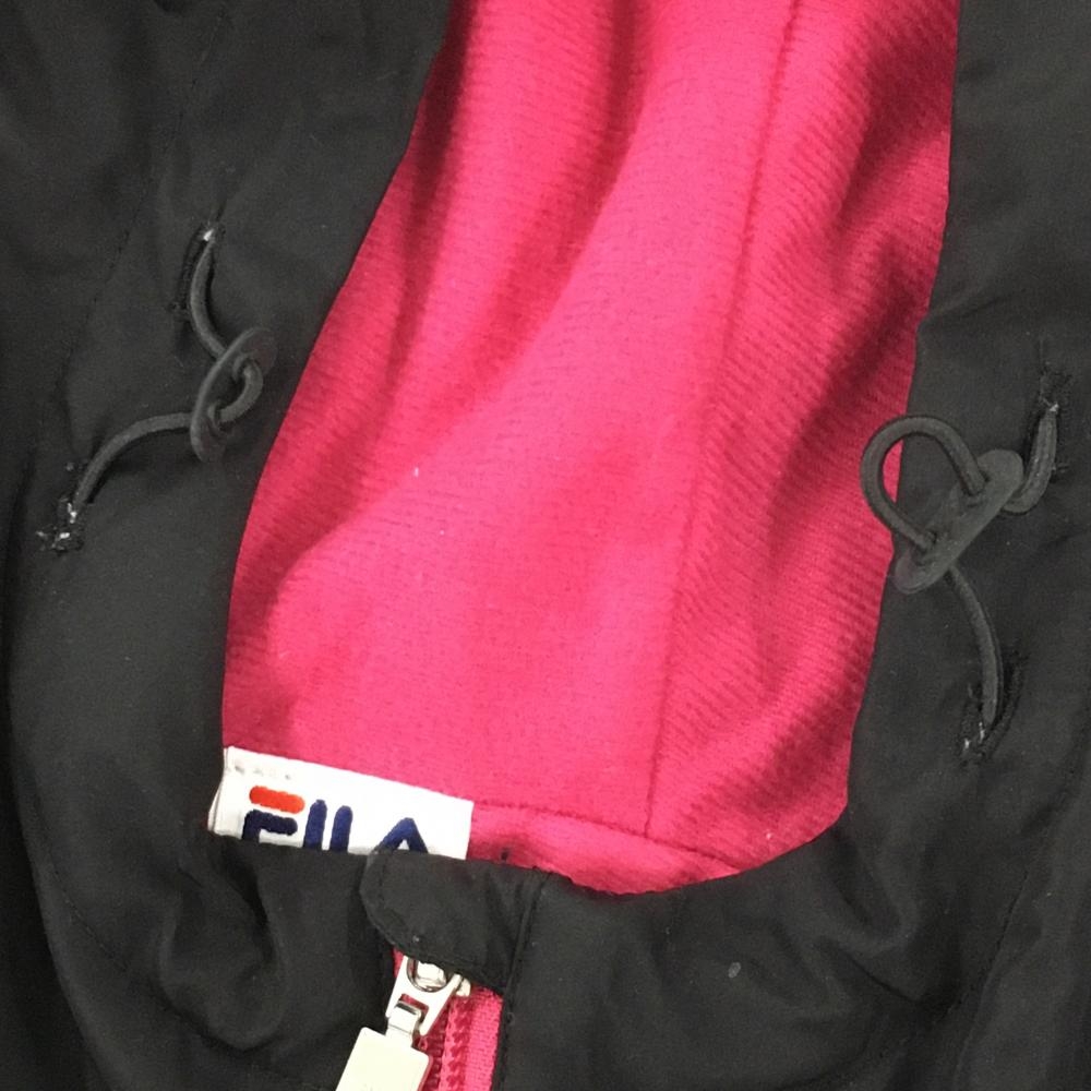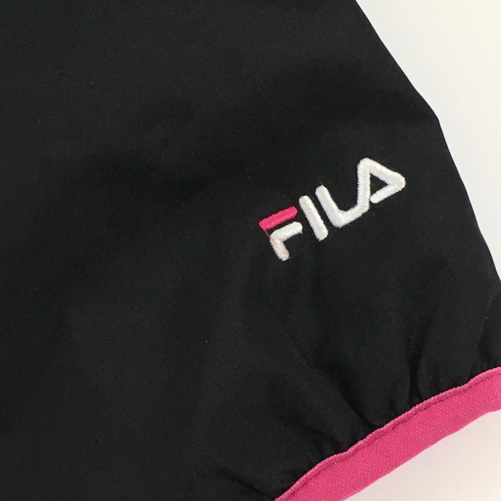 フィラゴルフ 中綿ジャケット 黒×ピンク 裏微起毛 ロゴプリント レディース L ゴルフウェア FILA GOLF