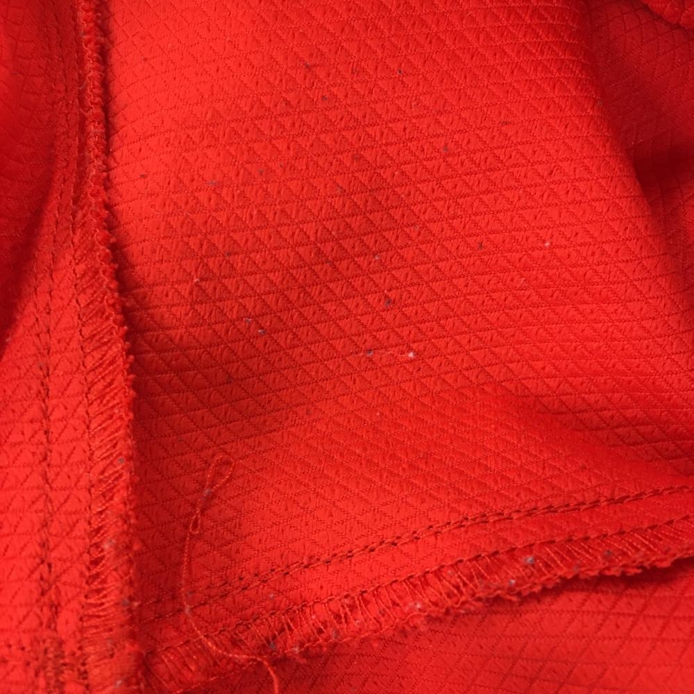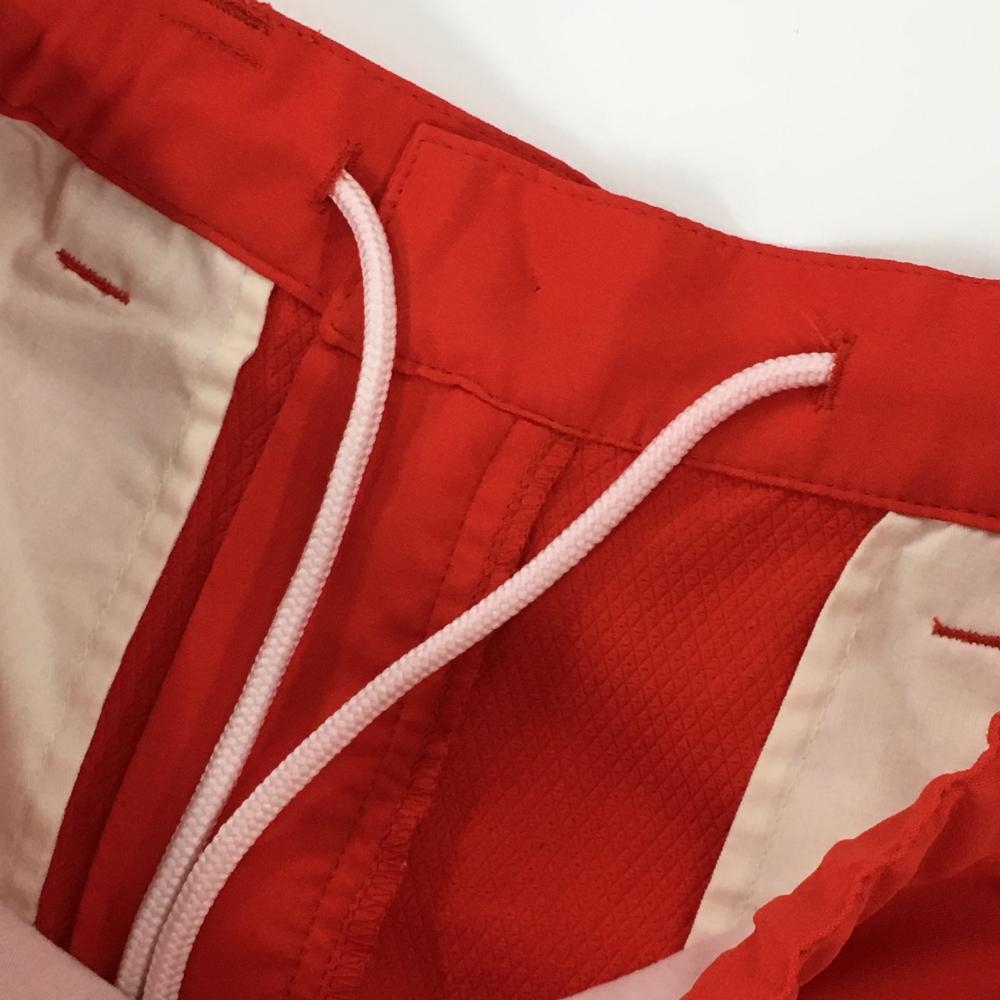 マスターバニー パンツ レッド 織生地 ウエスト調整紐 複数汚れ、ヒップ縫製解れ、内側毛羽立ち、ロゴはがれ メンズ ゴルフウェア MASTER BUNNY EDITION