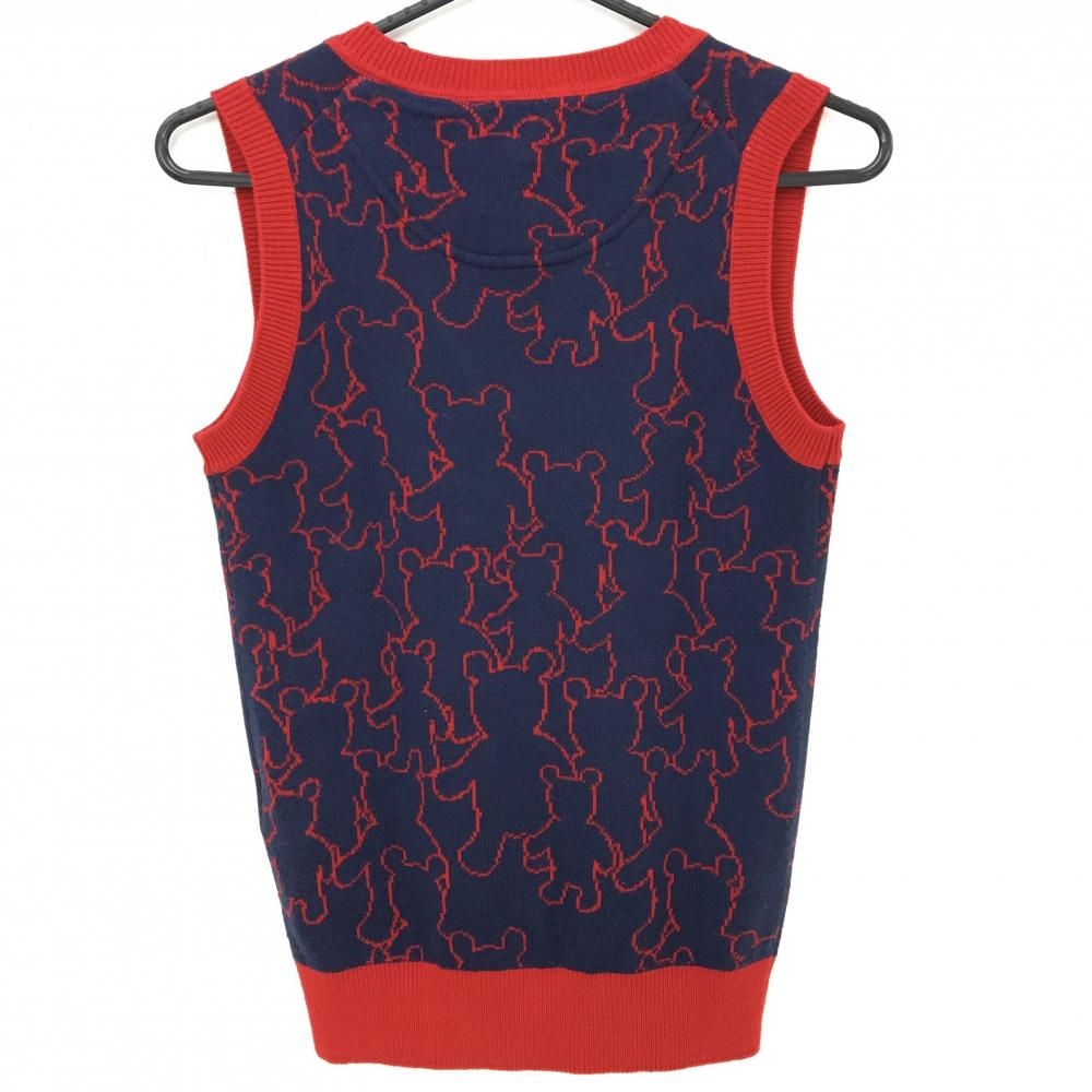 【超美品】キャロウェイ ニットベスト レッド×ネイビー ベアー総柄 ウール混 レディース M ゴルフウェア Callaway