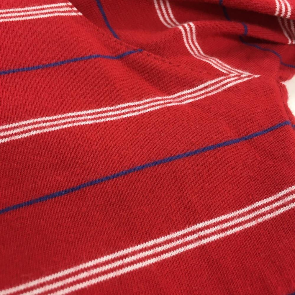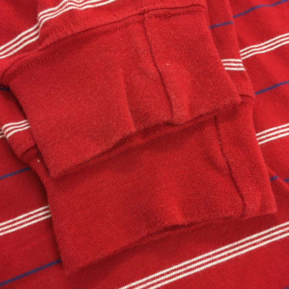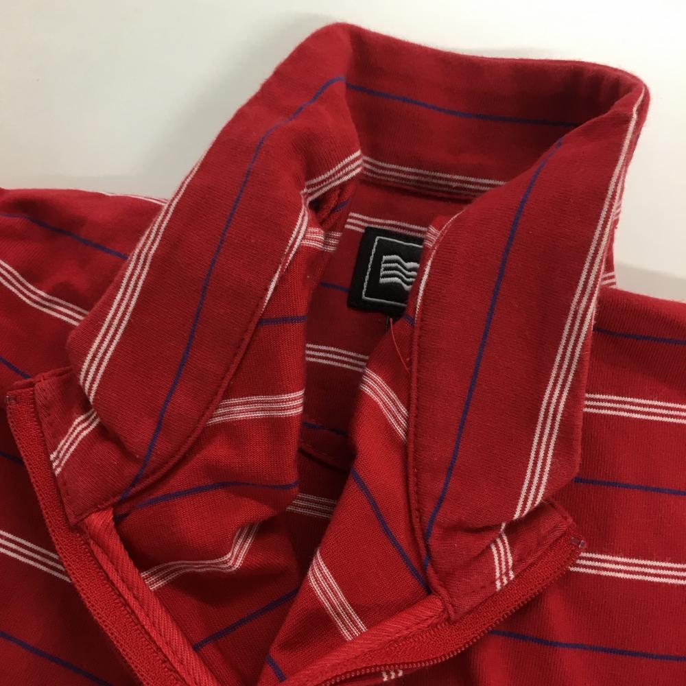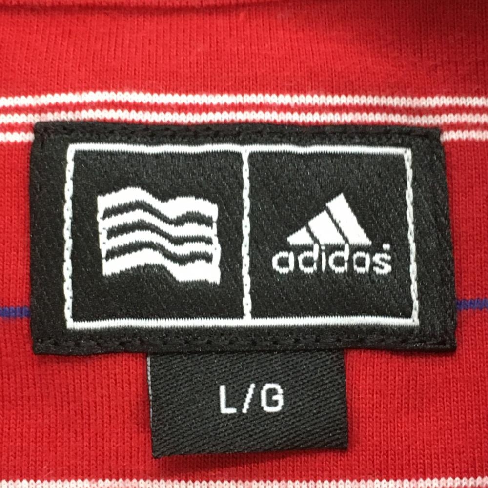 【美品】アディダス 長袖ハイネックシャツ レッド×白 ボーダー ハーフジップ メンズ L/G ゴルフウェア adidas
