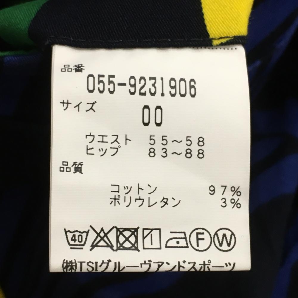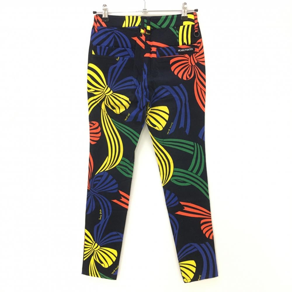【美品】パーリーゲイツ パンツ 黒×イエロー×レッド リボン柄 レディース 00(XS) ゴルフウェア PEARLY GATES