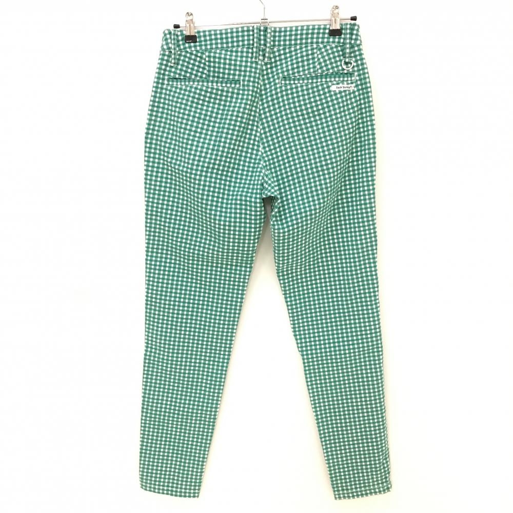 【美品】ジャックバニー パンツ グリーン×白 チェック サッカー生地 レディース 2(L) ゴルフウェア Jack Bunny