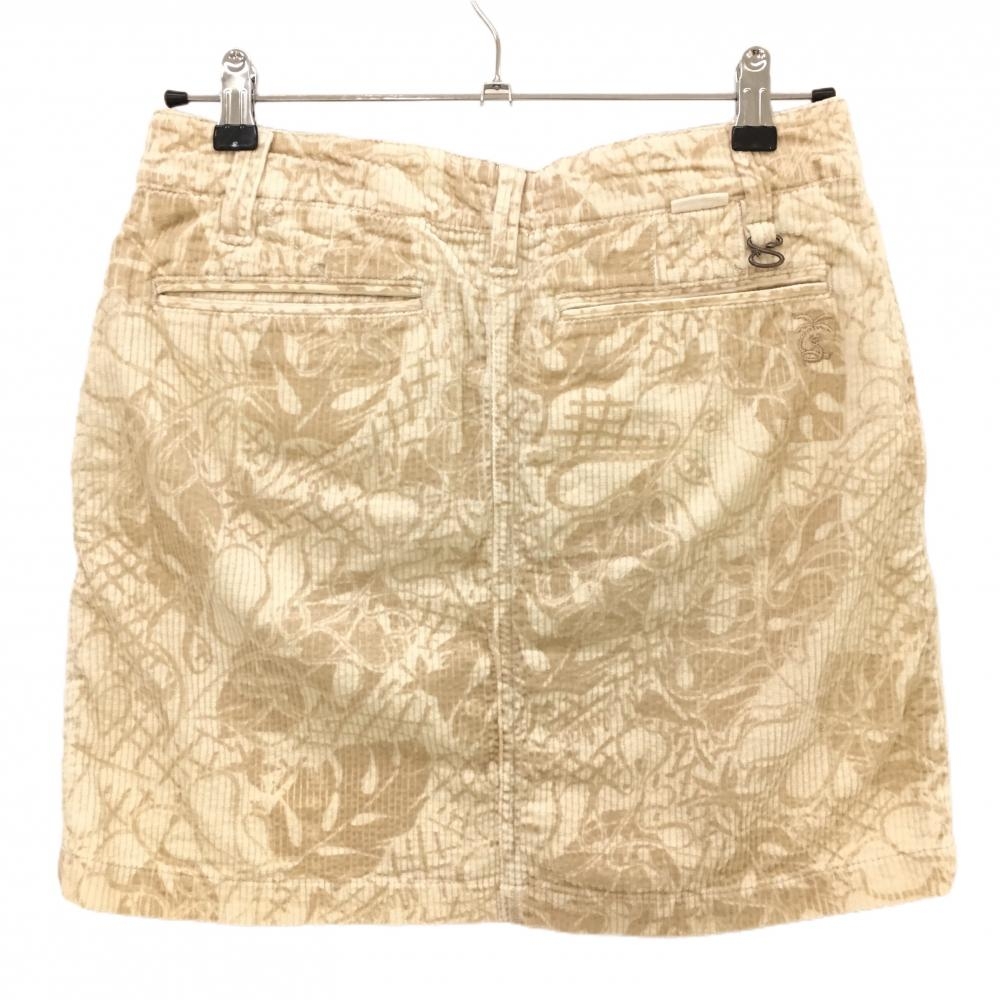 【美品】パームスネイク コーデュロイスカート アイボリー×ベージュ リーフ柄 レディース M ゴルフウェア PALMSNAKE