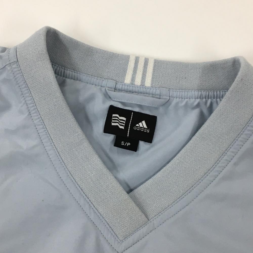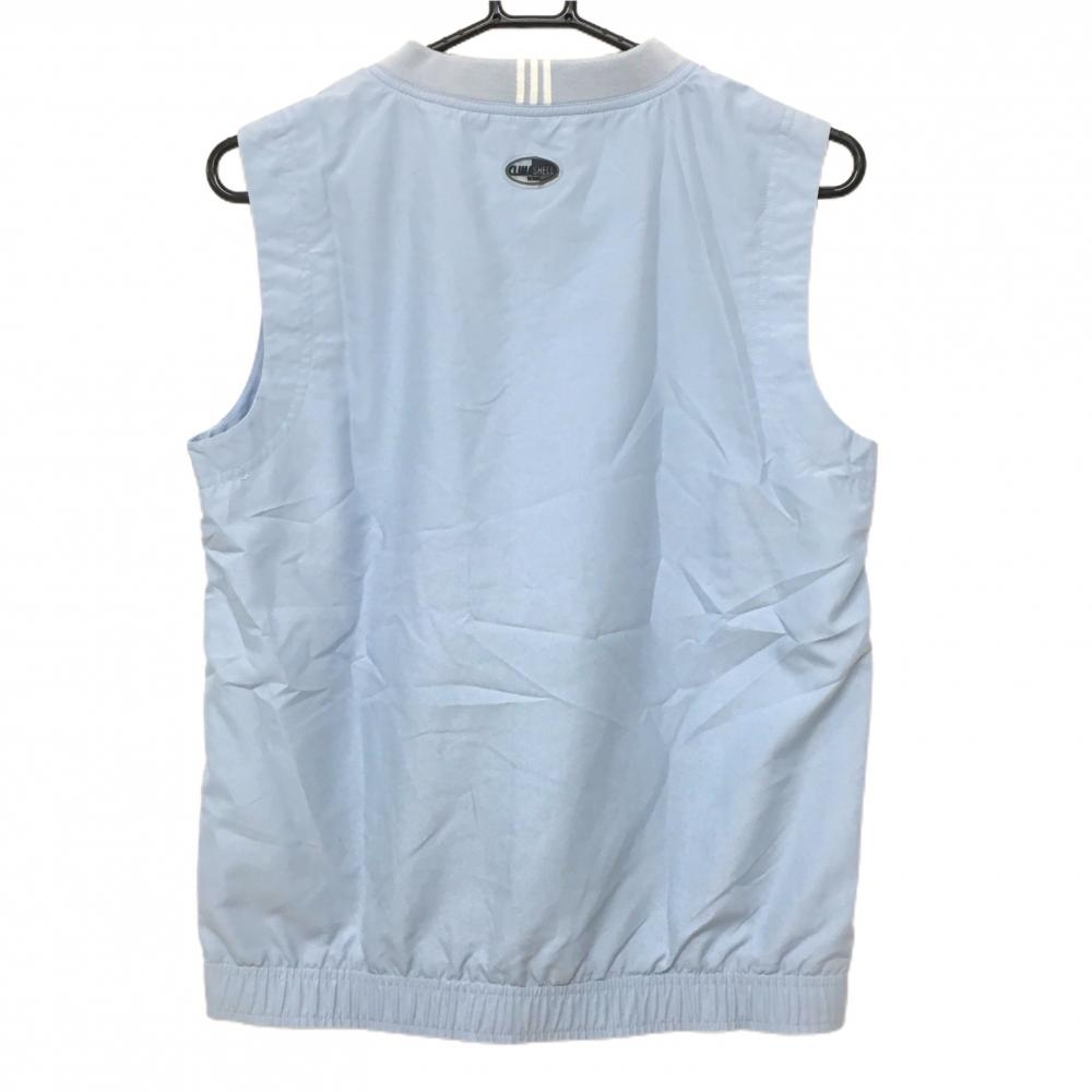 【美品】アディダス ベスト ライトブルー ロゴ刺しゅう Vネック メッシュ裏地 レディース S ゴルフウェア adidas