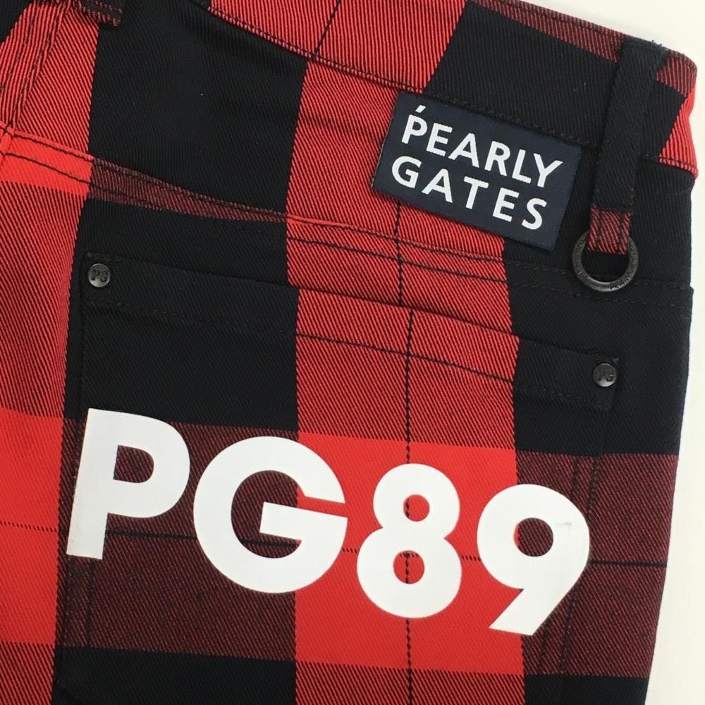 【超美品】パーリーゲイツ パンツ レッド×黒 チェック ストレッチ ロゴプリント レディース 1(M) ゴルフウェア PEARLY GATES