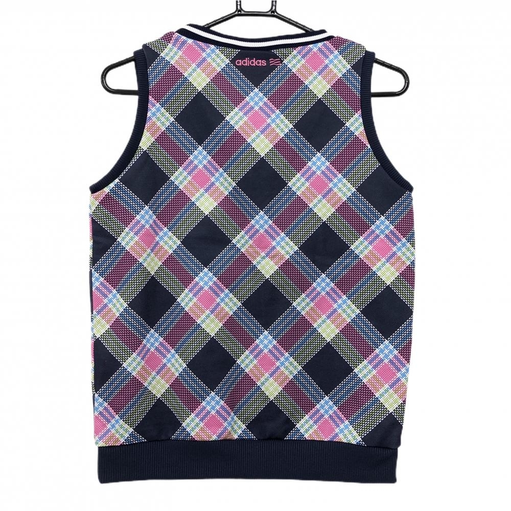 【美品】アディダス ベスト ネイビー×マルチカラー Vネック チェック レディース M/M ゴルフウェア adidas