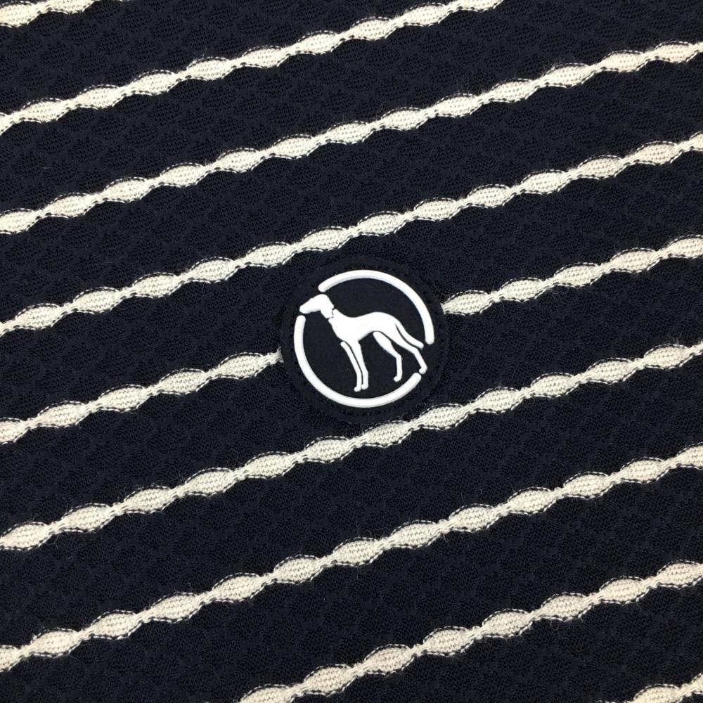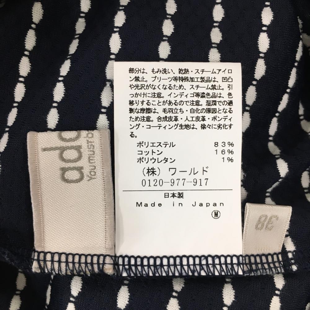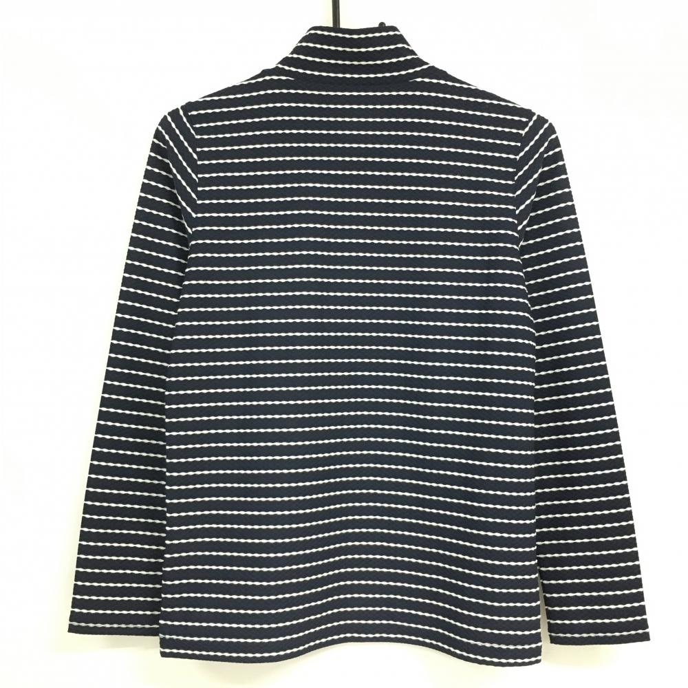 【超美品】アダバット 長袖ハイネックシャツ ネイビー×白 ボーダー調 織生地 レディース 38(M) ゴルフウェア adabat