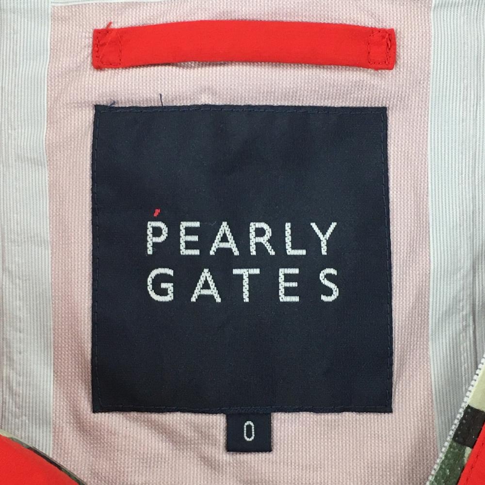 【美品】パーリーゲイツ ナイロンジップパーカー レッド×ライトグレー 一部カモフラ柄 迷彩 レディース 0(S) ゴルフウェア PEARLY GATES