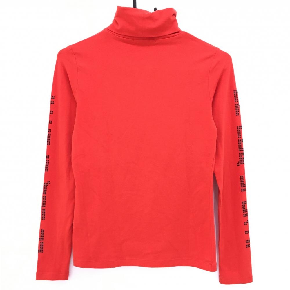 ルコック 長袖タートルネックシャツ レッド×黒 袖ロゴスタッズ レディース M ゴルフウェア le coq sportif