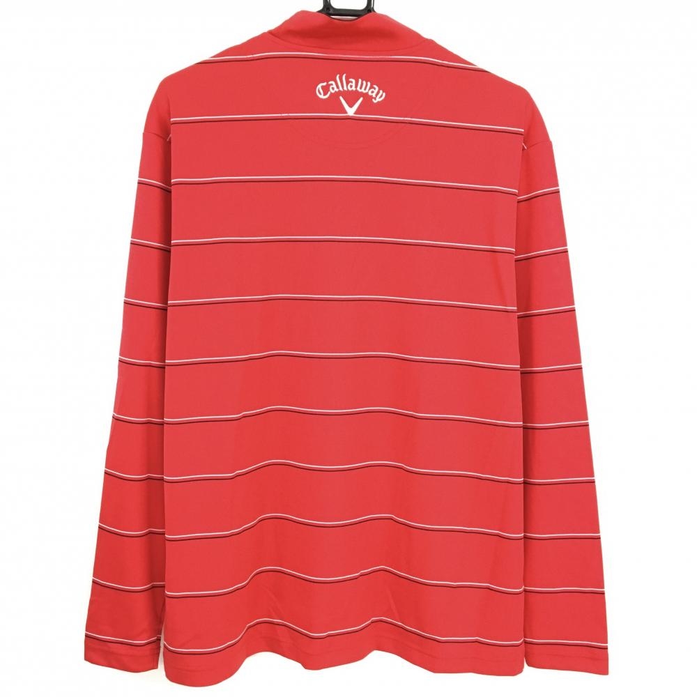 【美品】キャロウェイ 長袖ハイネックシャツ レッド×白 ボーダー ロゴ刺しゅう メンズ L ゴルフウェア Callaway
