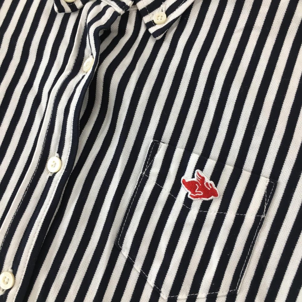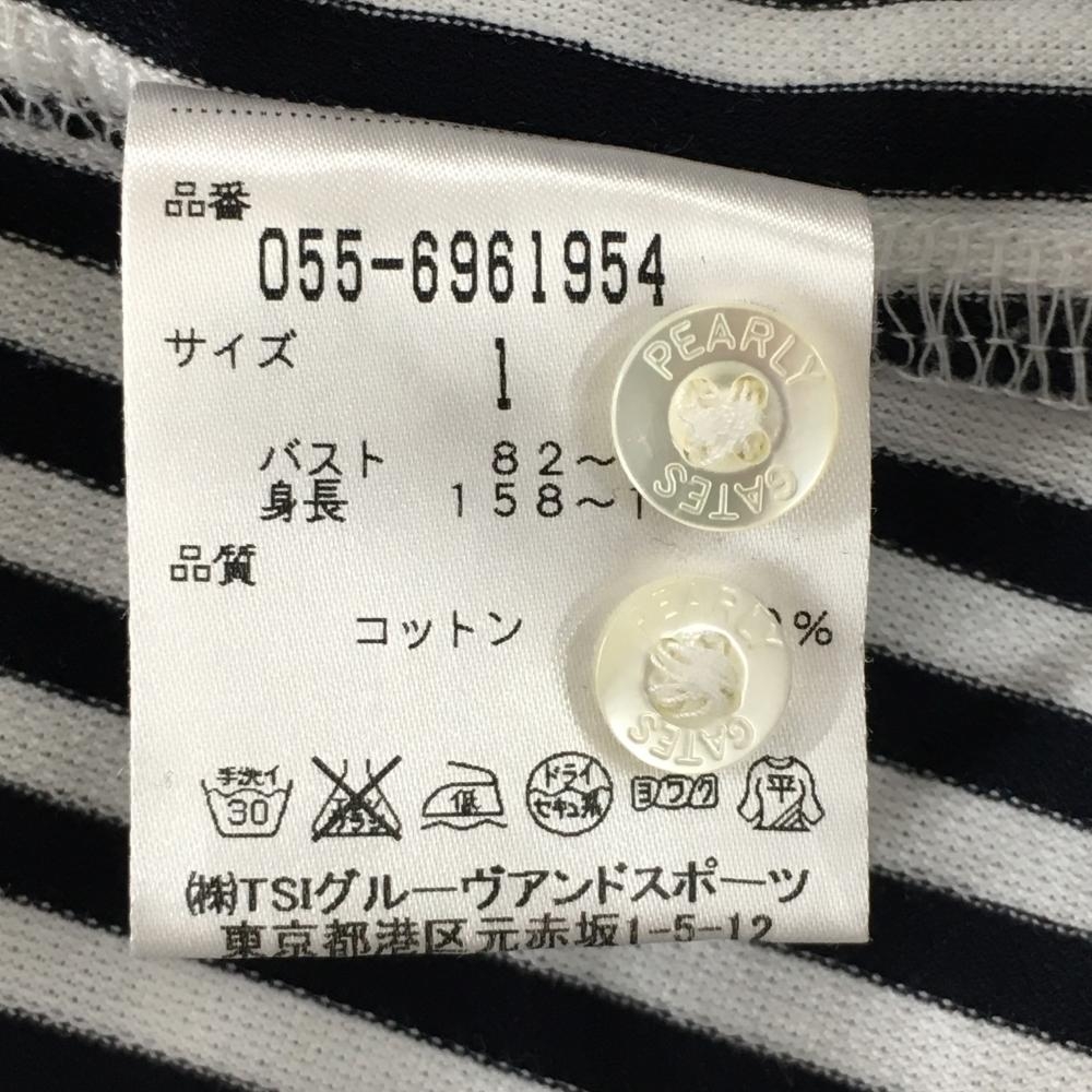 パーリーゲイツ 長袖シャツ 白×黒 ストライプ ボタンダウン レディース 1(M) ゴルフウェア PEARLY GATES