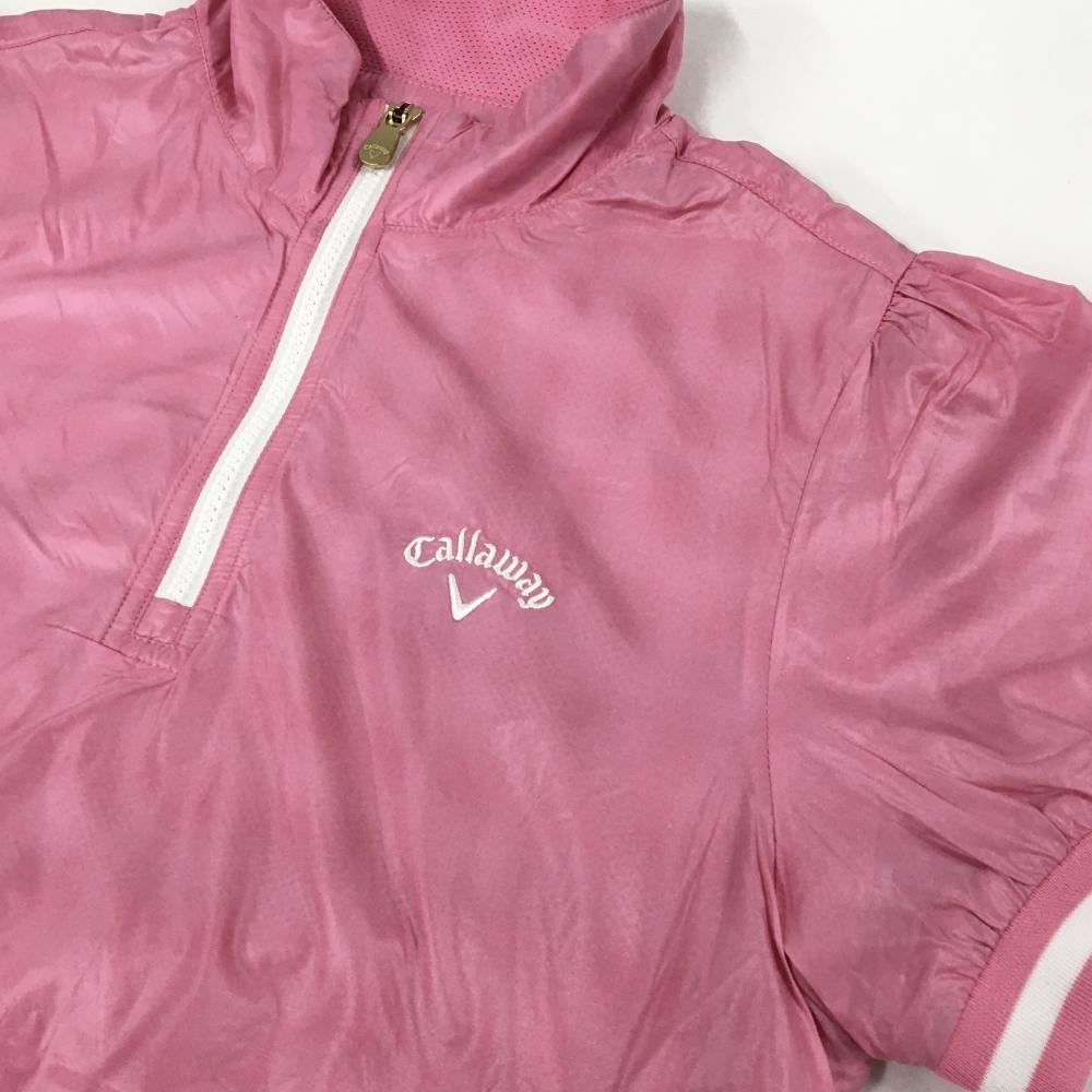 キャロウェイ 半袖ブルゾン ピンク×白 ハーフジップ 裏地メッシュ レディース L ゴルフウェア Callaway