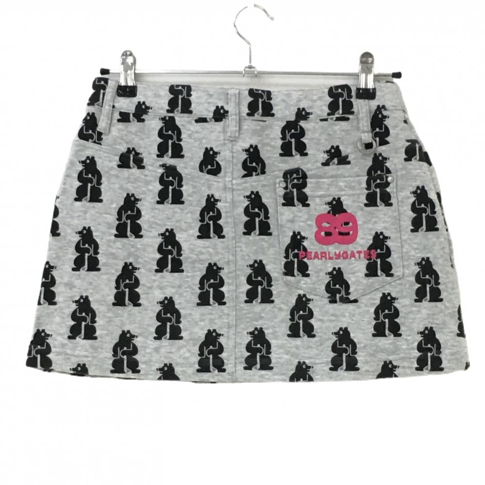 【美品】パーリーゲイツ スカート グレー×黒 総柄 ウエスト レディース 1(M) ゴルフウェア PEARLY GATES