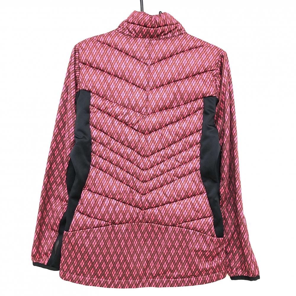 【超美品】ミズノゴルフ 中綿ジャケット ピンク×ブラウン ダイヤ柄 身頃中綿 袖下・サイド切替 メンズ M ゴルフウェア MIZUNO