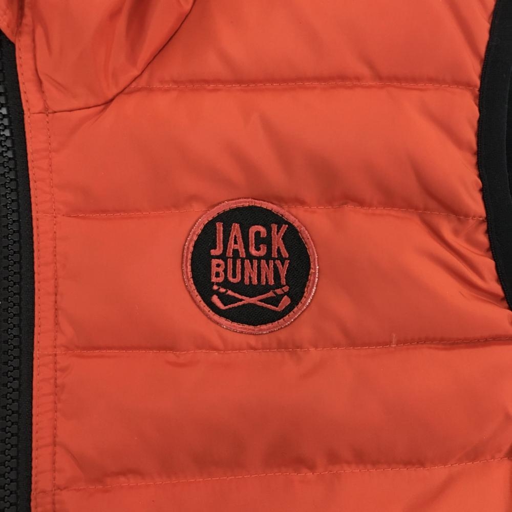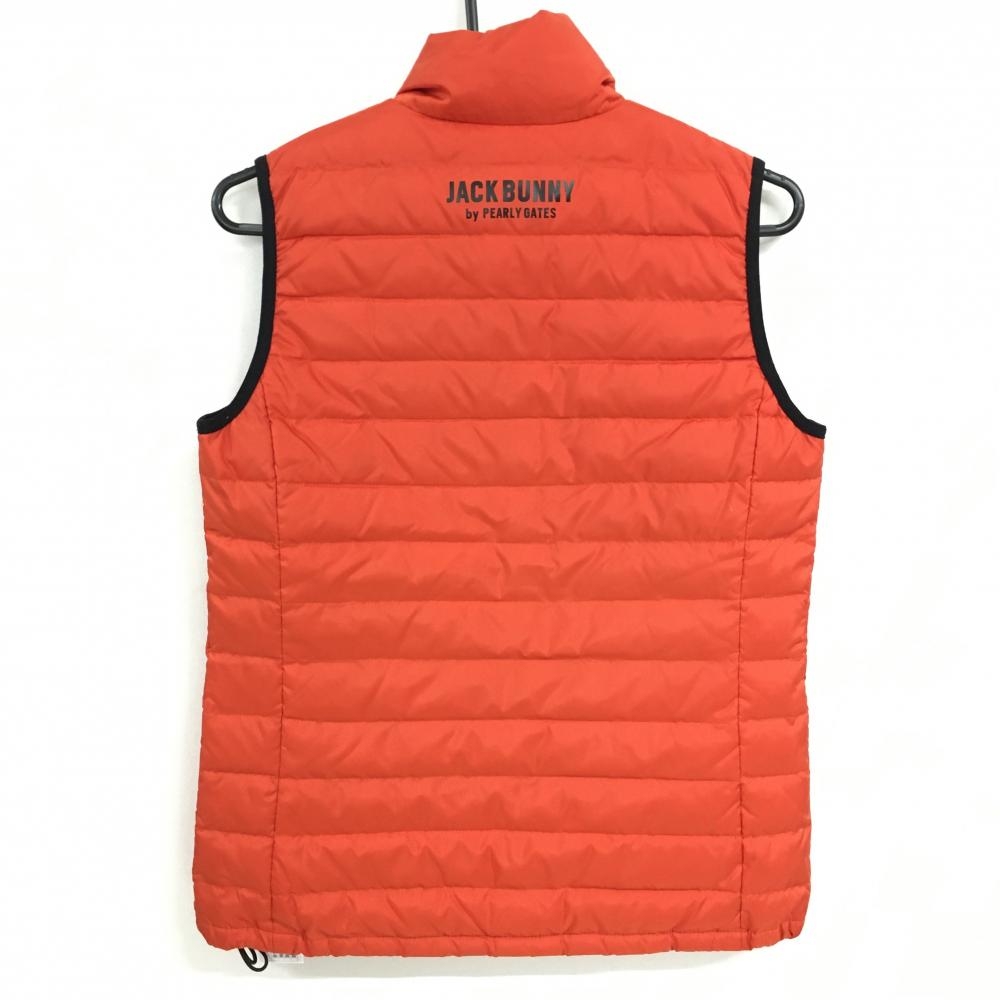 【美品】ジャックバニー ダウンベスト オレンジレッド×黒 ロゴワッペン ドローコード レディース 1(M) ゴルフウェア Jack Bunny