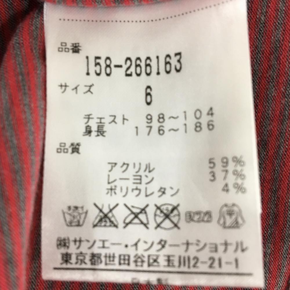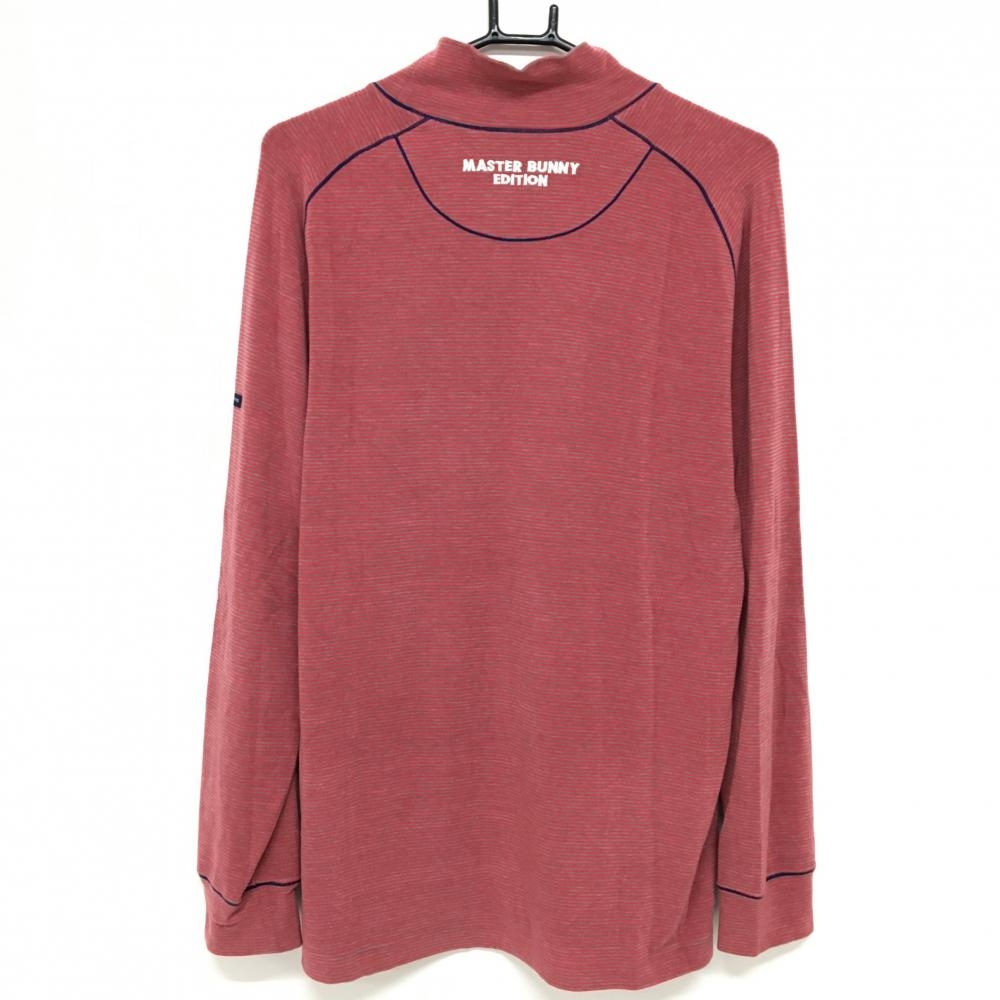【美品】マスターバニー 長袖ハイネックシャツ レッド×グレー 細ボーダー メンズ 6(XL) ゴルフウェア MASTER BUNNY EDITION