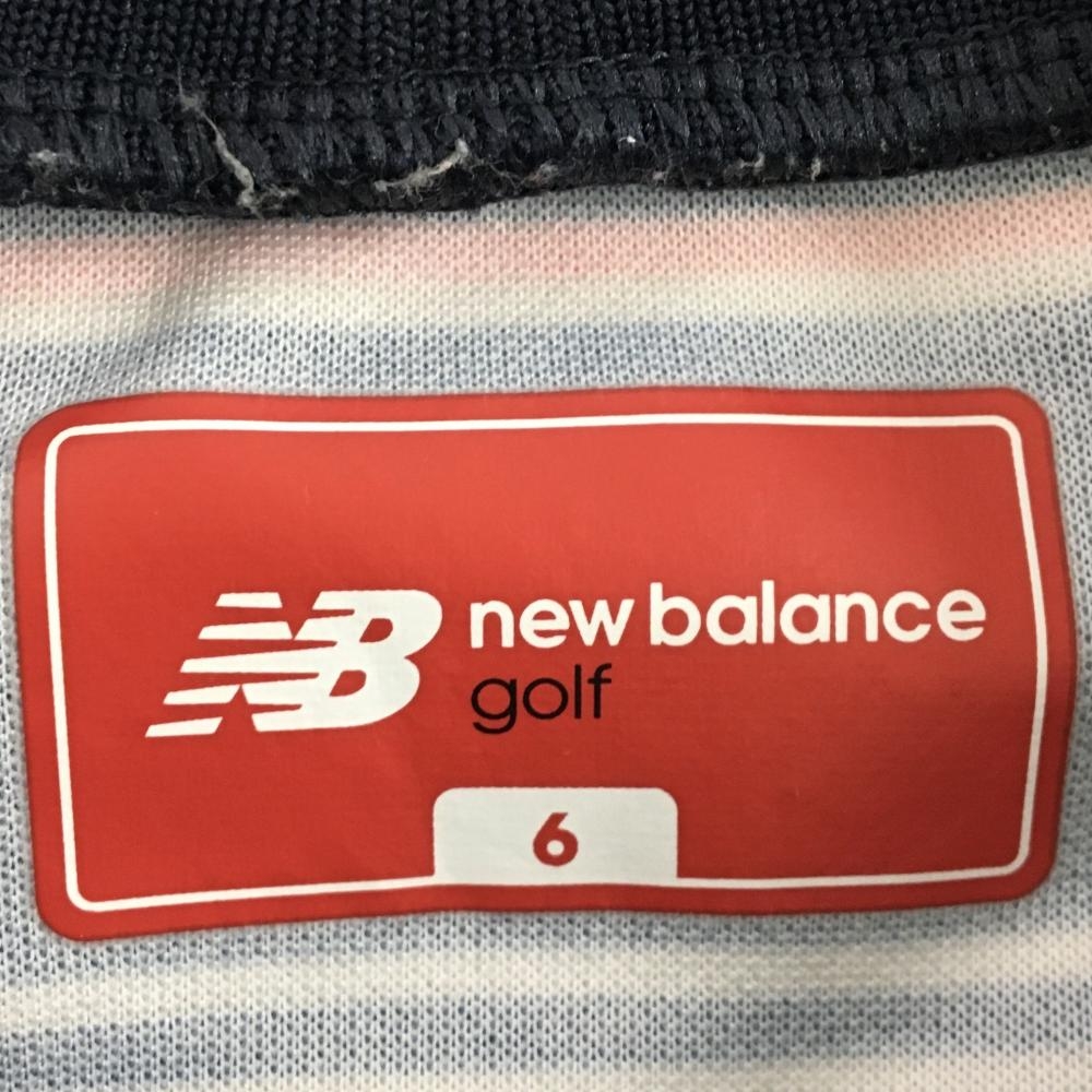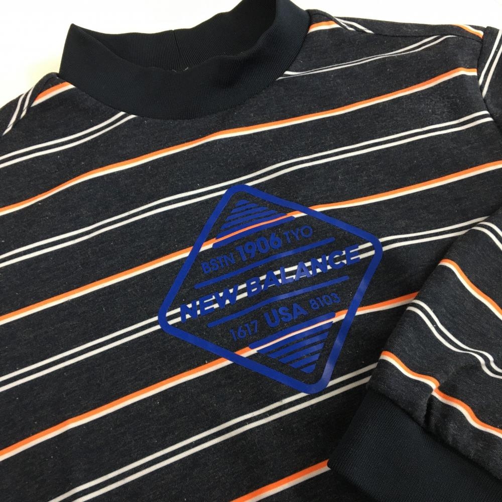 ニューバランスゴルフ 長袖ハイネックシャツ ネイビー×白 ボーダー フロントロゴ メンズ 6(XL) ゴルフウェア New Balance