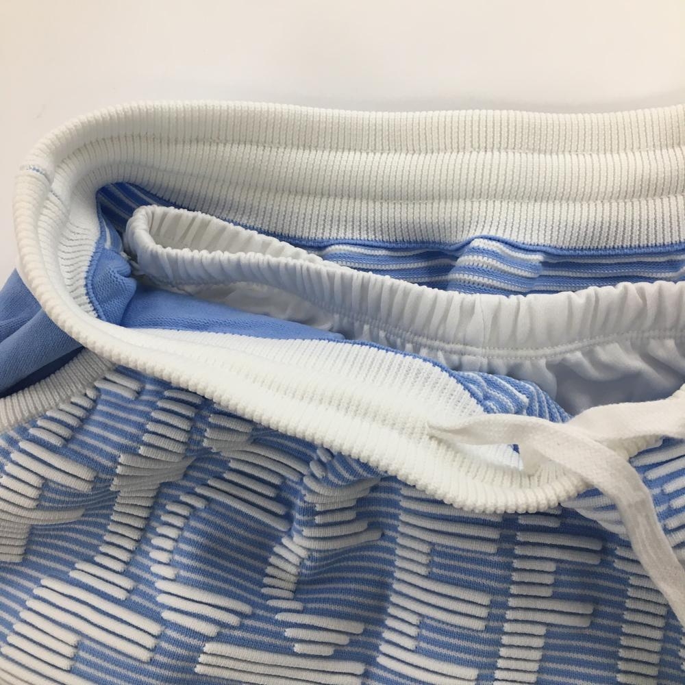 【新品】フィッチェゴルフ ニットスカート ライトブルー×白 フロントロゴ編み ドン小西 レディース M ゴルフウェア FICCE GOLF