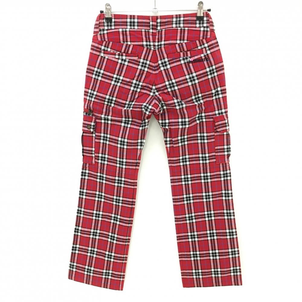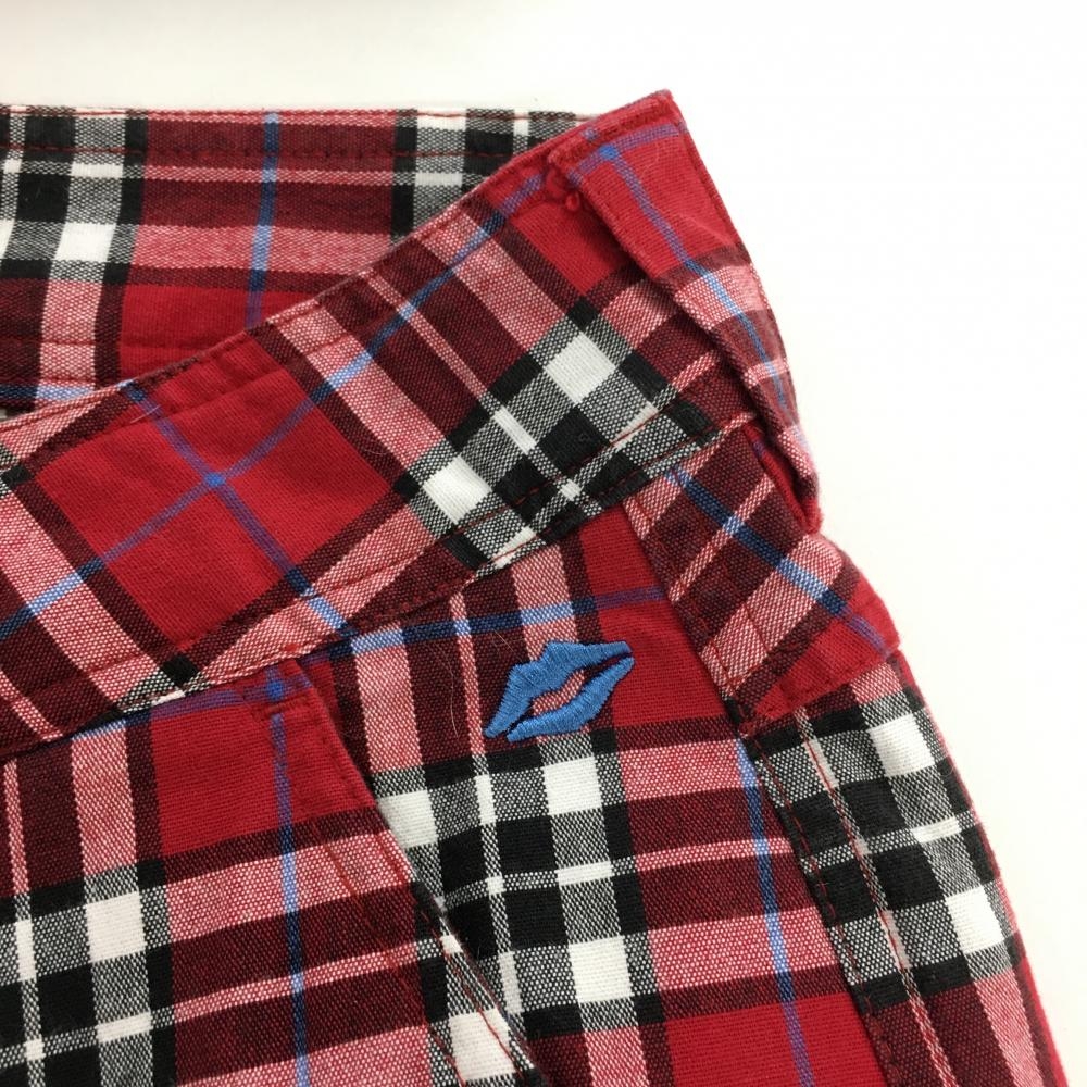 【美品】キスマークゴルフ パンツ レッド×黒 チェック レディース 9 ゴルフウェア kissmark