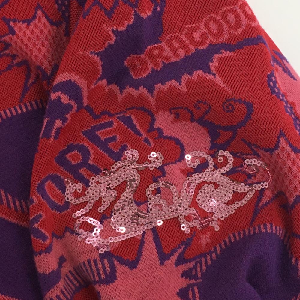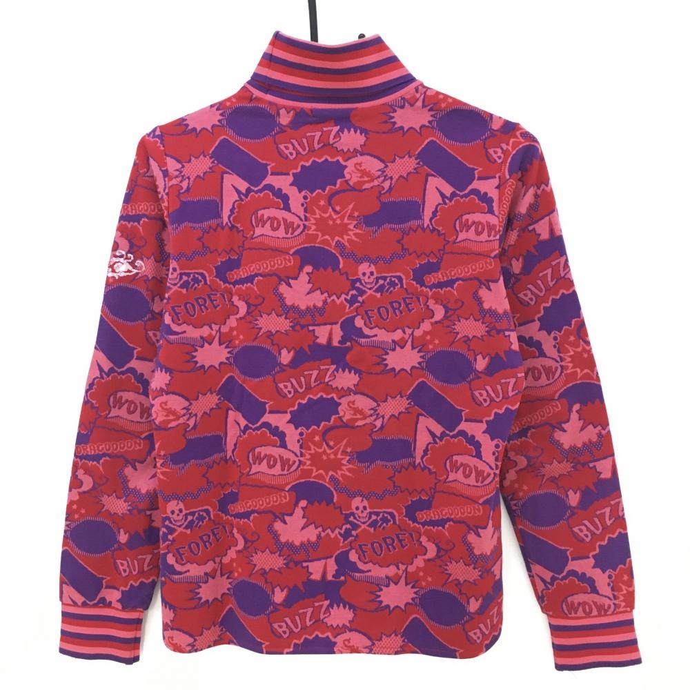 ダンスウィズドラゴン 長袖ハイネックシャツ レッド×パープル 総柄 スカル レディース 2(M) ゴルフウェア Dance With Dragon