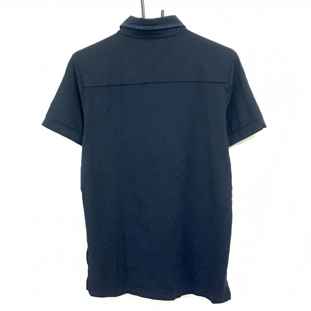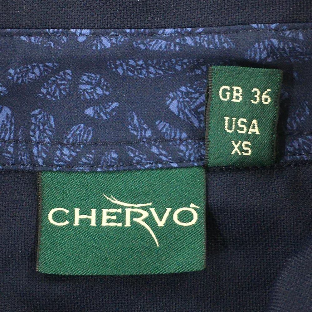 【美品】シェルボ 半袖ポロシャツ ネイビー 襟一部総柄 メンズ XS ゴルフウェア CHERVO