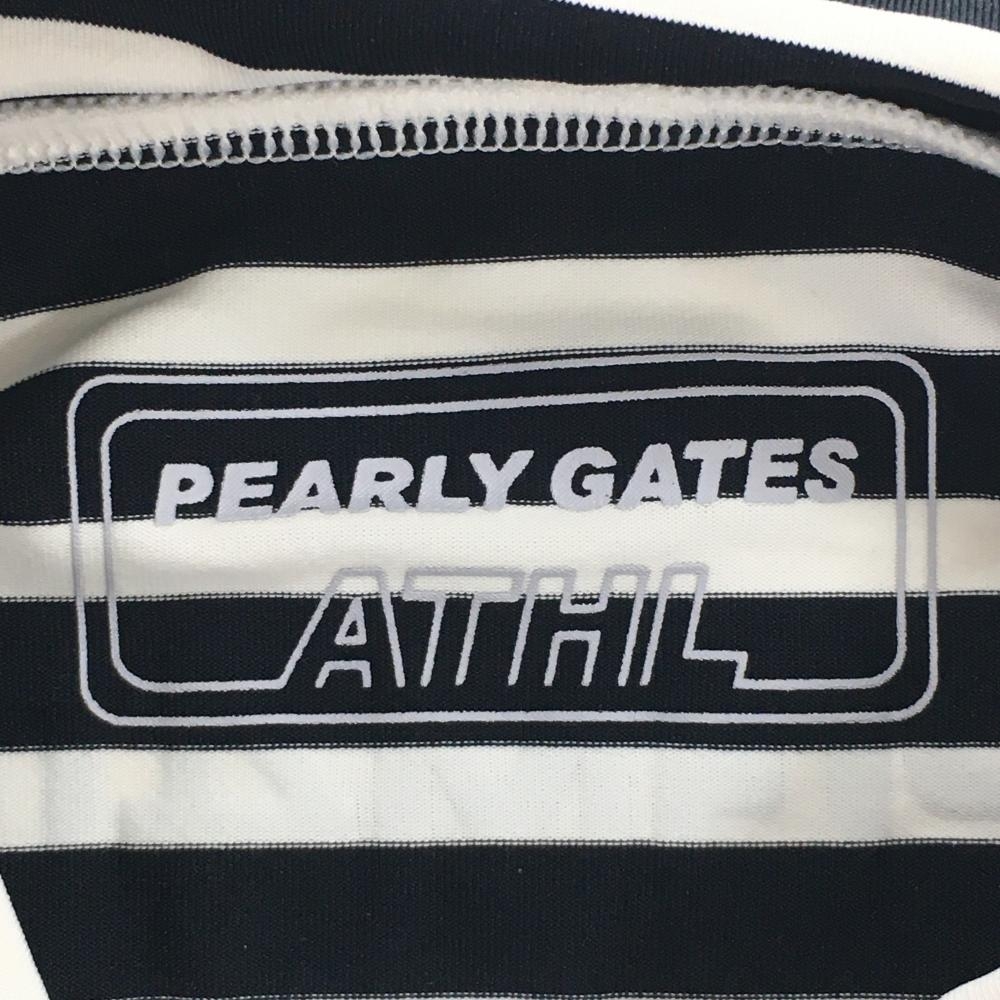 【超美品】パーリーゲイツ ハイネックインナーシャツ 黒×白 ボーダー 袖ロゴ レディース 0(S) ゴルフウェア PEARLY GATES