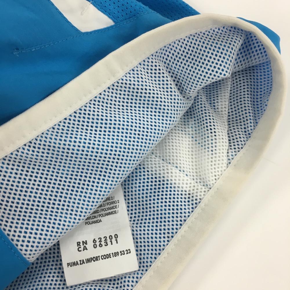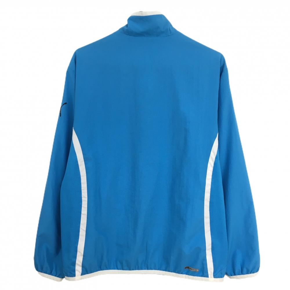 プーマ ジャケットブルゾン ライトブルー×白 サイド切替 裏地メッシュ ロゴプリント メンズ L ゴルフウェア PUMA