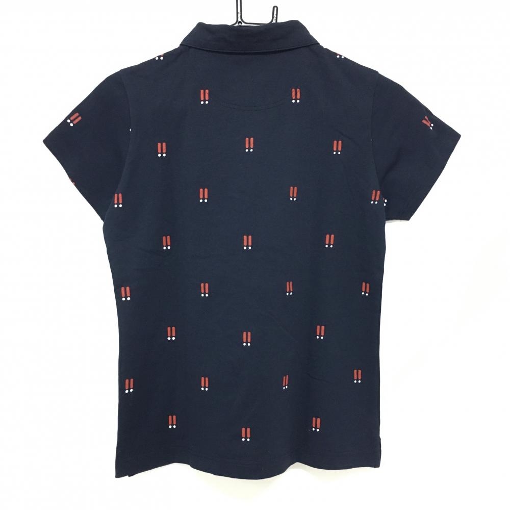 【超美品】ジャックバニー 半袖ポロシャツ ネイビー×レッド ビックリマーク ロゴ刺しゅう レディース 1(M) ゴルフウェア Jack Bunny
