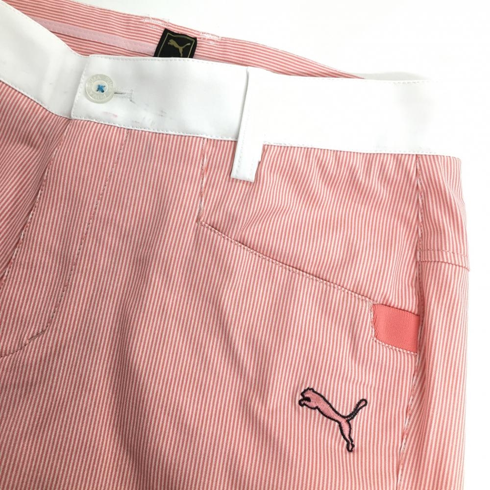 プーマ パンツ ピンクオレンジ×白 細ストライプ ストレッチ USPDRY レディース 72 ゴルフウェア PUMA